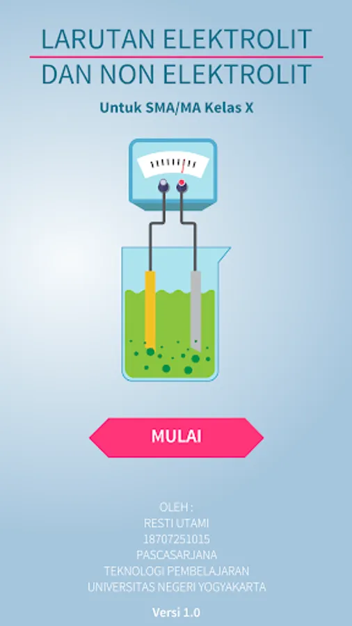 Learning media in the form of a mobile app for Chemistry subjects with Electrolyte and Non-Electrolyte Solutions for High School / MA Class X Department of Natural Sciences.