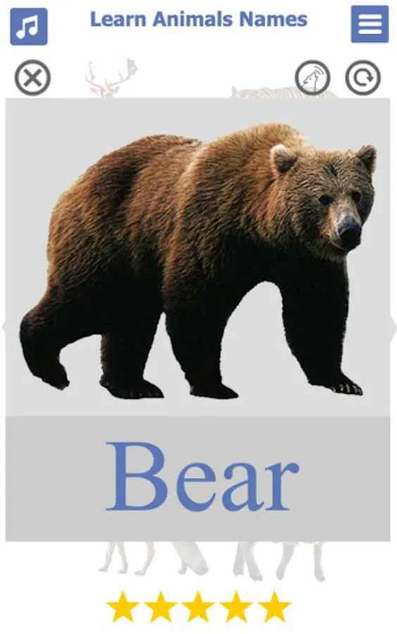 👉 You can hear the animal sound, when you click the sound button over the animal image such as lion sound, bear sounds, deer sounds, and bobcat sounds.