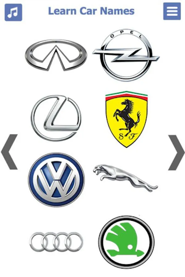 This App shows a big list of car names and car title with their manufacturer logo and car pictures. There are cars & vehicles, App shows each motor vehicle with its name and picture.