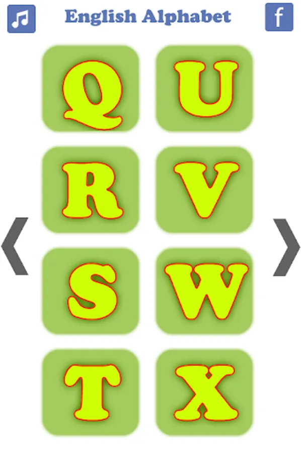 👸👶🤴 Welcome to the easy interesting educational spoken English application for Kids that teaches English Alphabet. There is three pages of alphabet list, each page contains 8 letters.