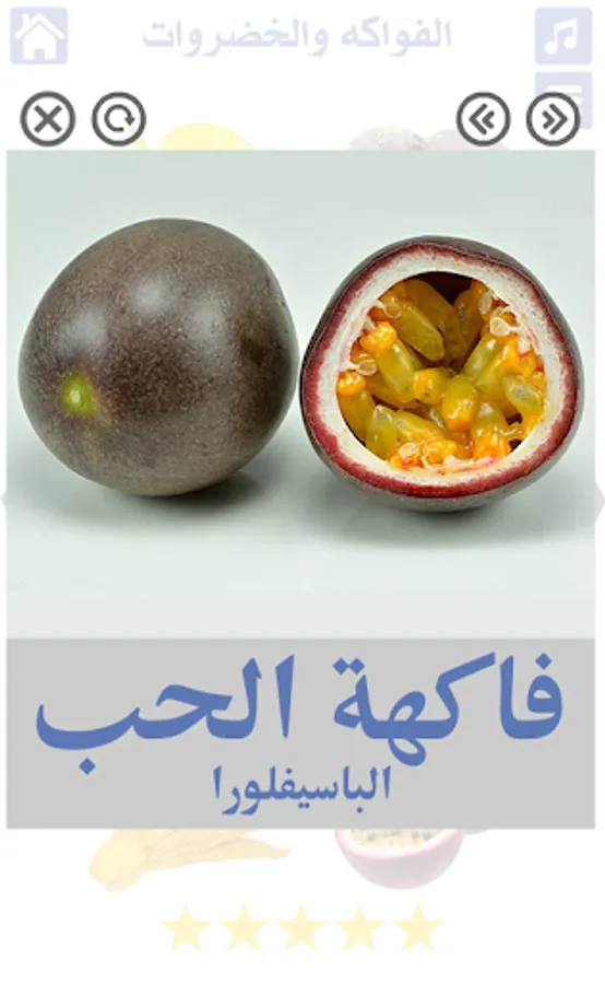 ⭐ There are names of fruits and vegetables with the possibility of moving between them through the forward and backward arrow buttons.
