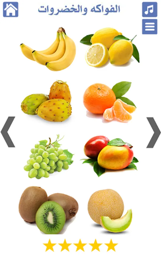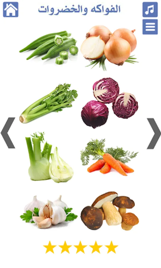 This wonderful application offers you the names of vegetables in Arabic with pictures and types of fruits and their names. There are many and varied vegetables and fruits that you know and do not know.