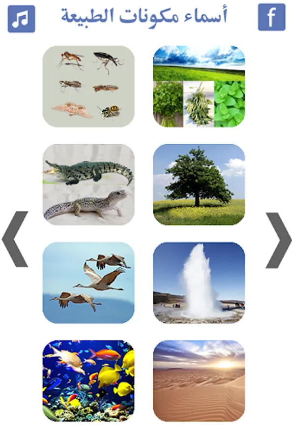 👈 The application teaches children as well as students of Arabic language courses of different nationalities and for different ages where it displays pictures about nature and each image opens in a larger size and speaks its name in Arabic and writes the name as well in Arabic.