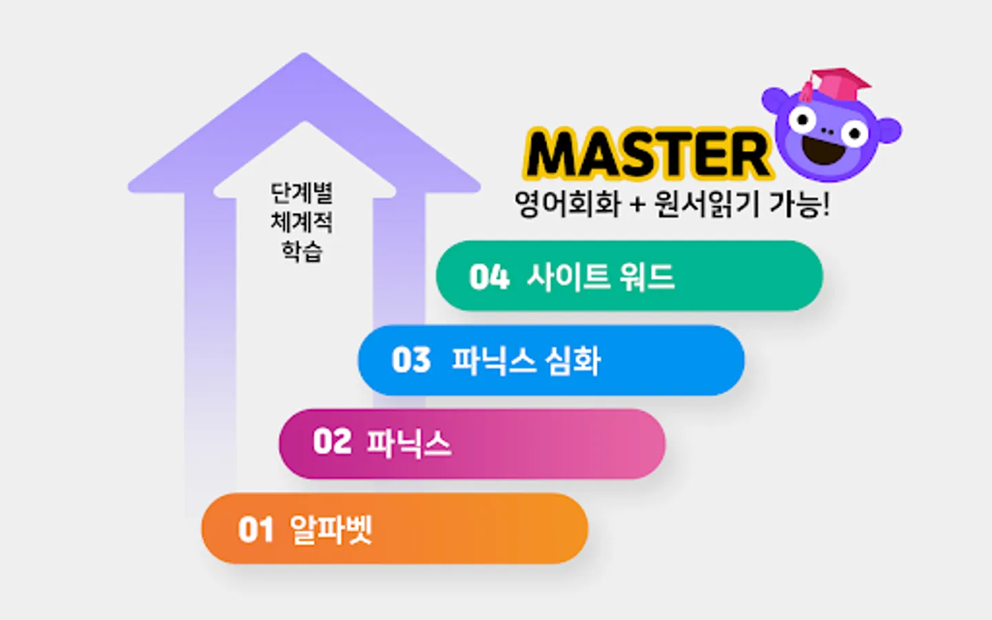 ▶ English conversation + reading of the application is possible through systematic learning in 4 steps!
