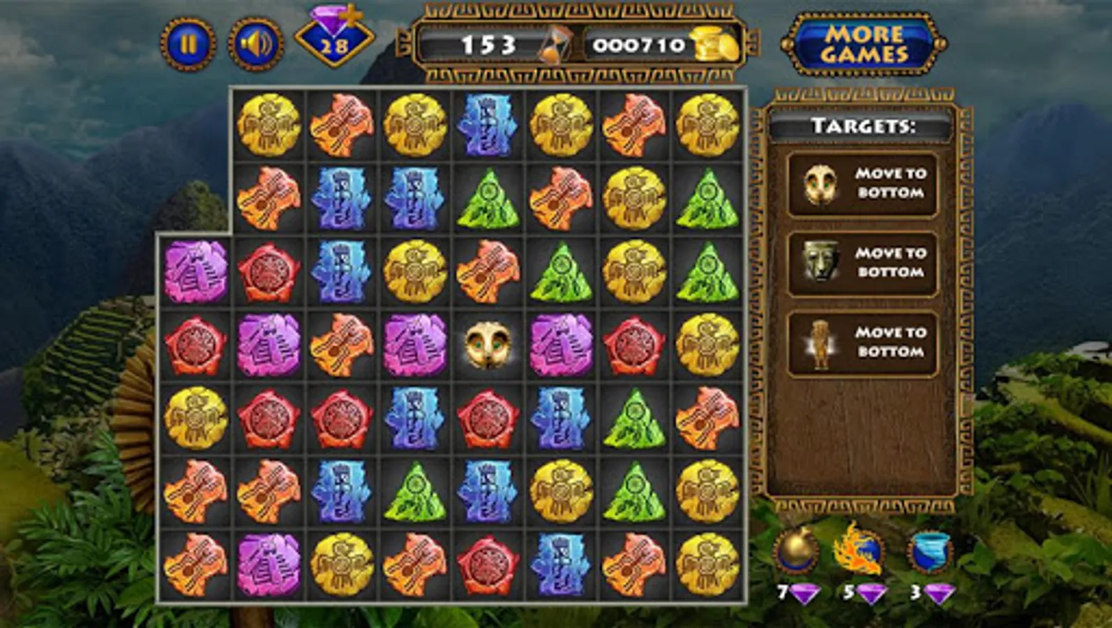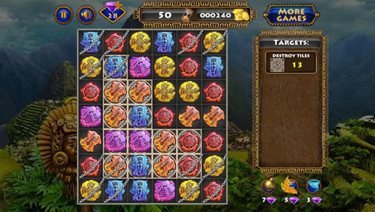 Find the lost Inca gold while playing this addictive puzzle match 3 game. Join the tourist Michael in his thrilling search of the lost gold and overcome the challenging obstacles during this enthralling adventure through mysterious ruins of Machu Picchu and other Inca ancient cities. Popular match 3 game becomes even more exciting! Hundred levels, four game modes with various goals, different bonuses and busters. Plunge into the amazing world of match 3 adventure!