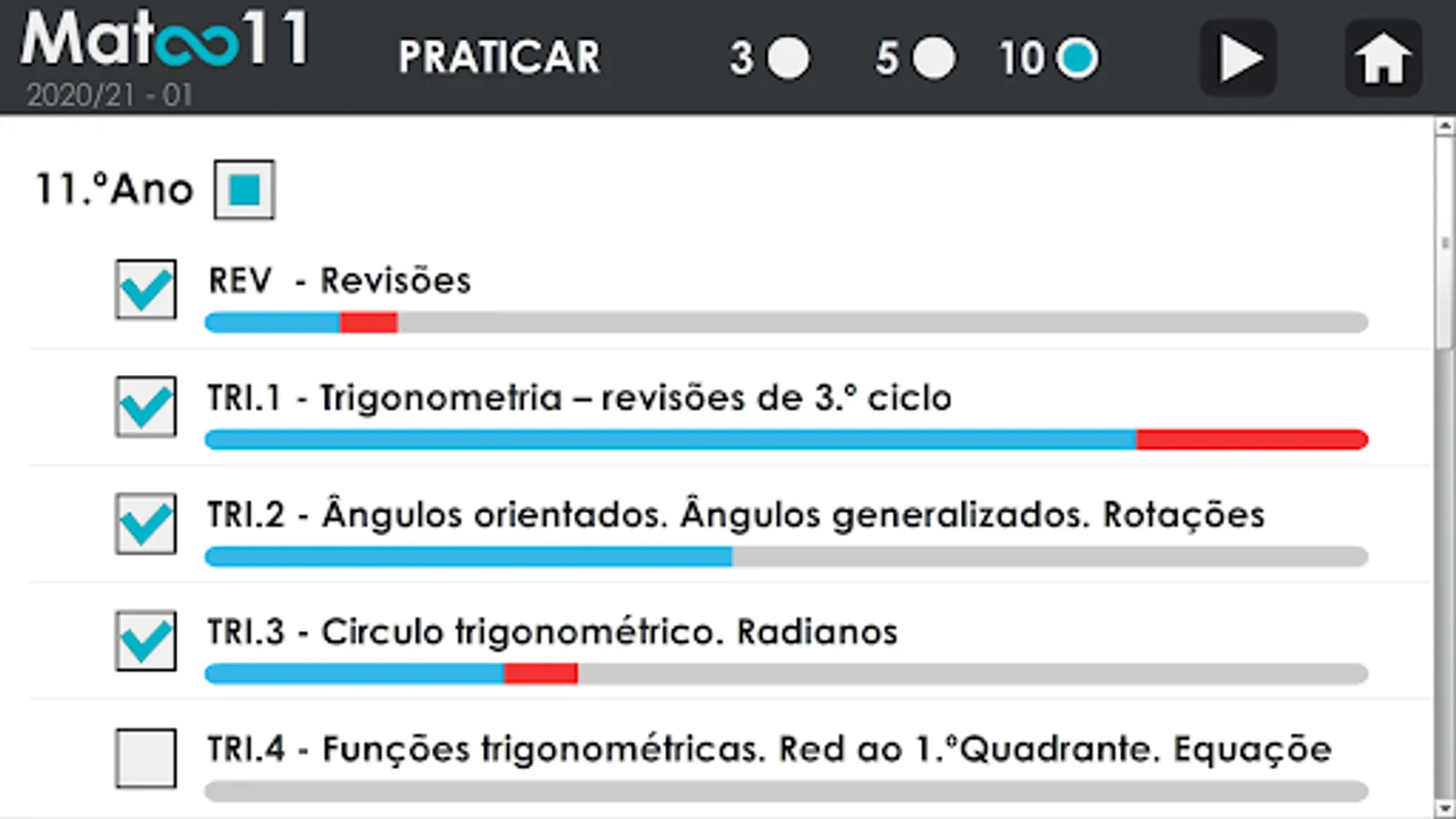 1 - practice solving a wide variety of Mathematics exercises, carefully selected and organized by the contents that make up the 11th grade mathematics program;