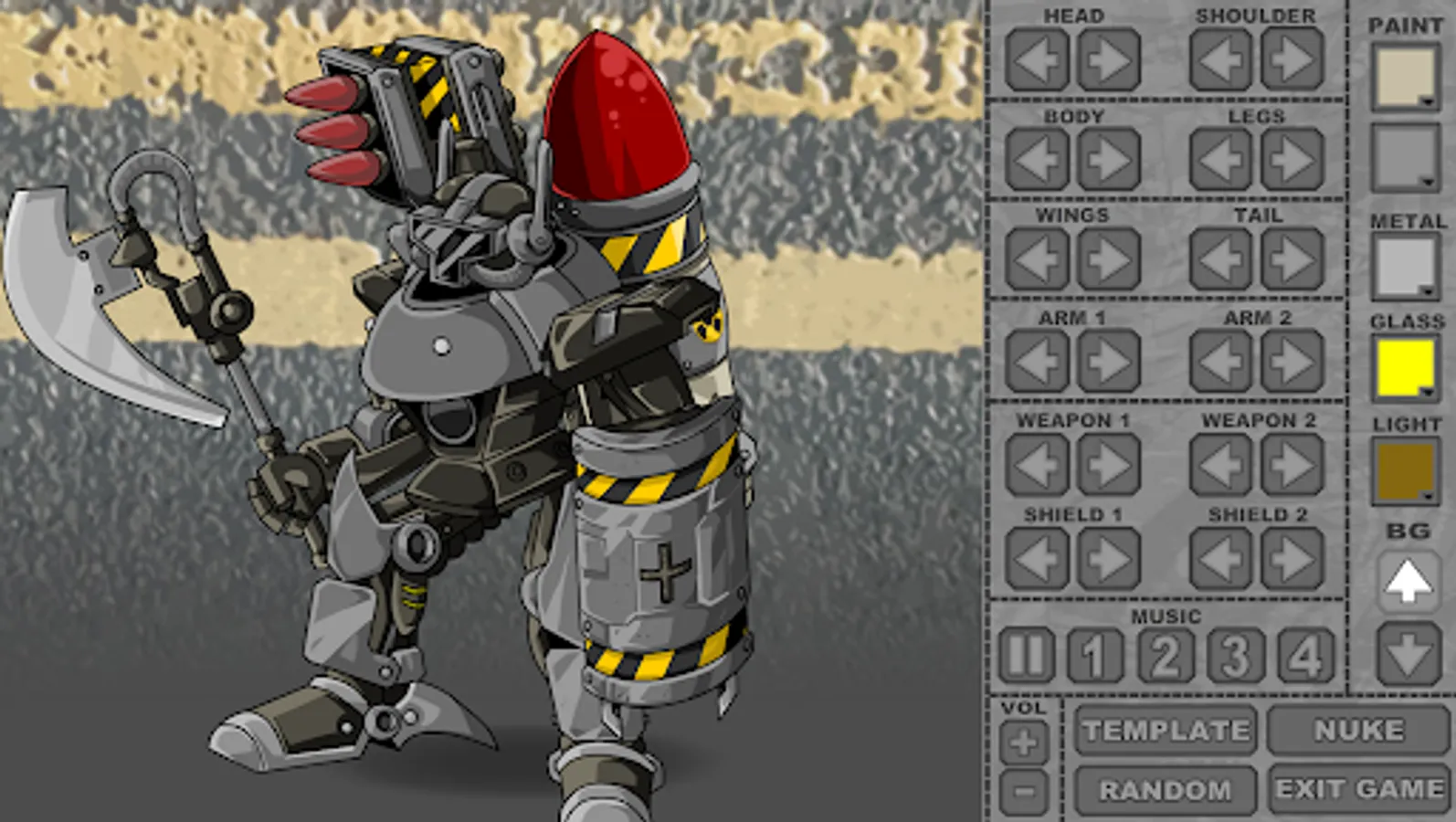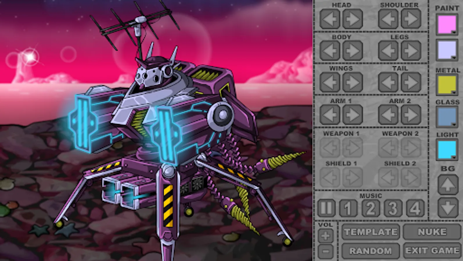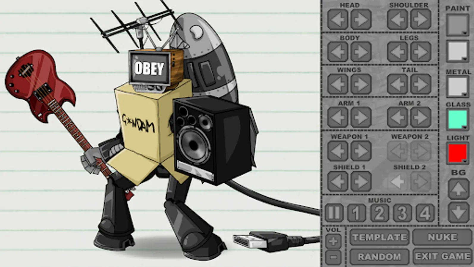 Build a giant robot out of guns, swords, armor, jetpacks, lasers, TV antennas, fancy hats, guitars, sharks, and much more.