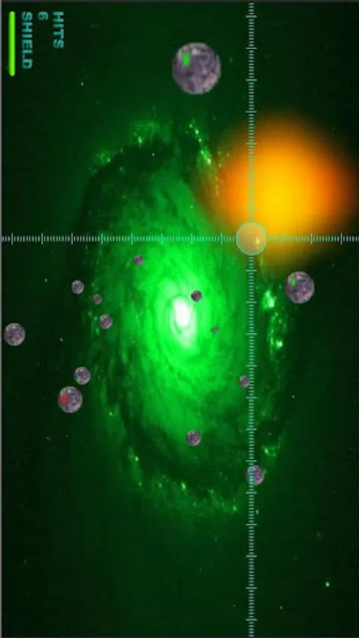 Fly into a meteor shower. Shoot'em up! Crosshairs and in 3D! The shield weakens with each missed meteor. Play with accelerometer or touch screen/pad. Stereo sound. 1 free level of 3. Click 'Mach 1' to play and to set a new accelerometer anchor.