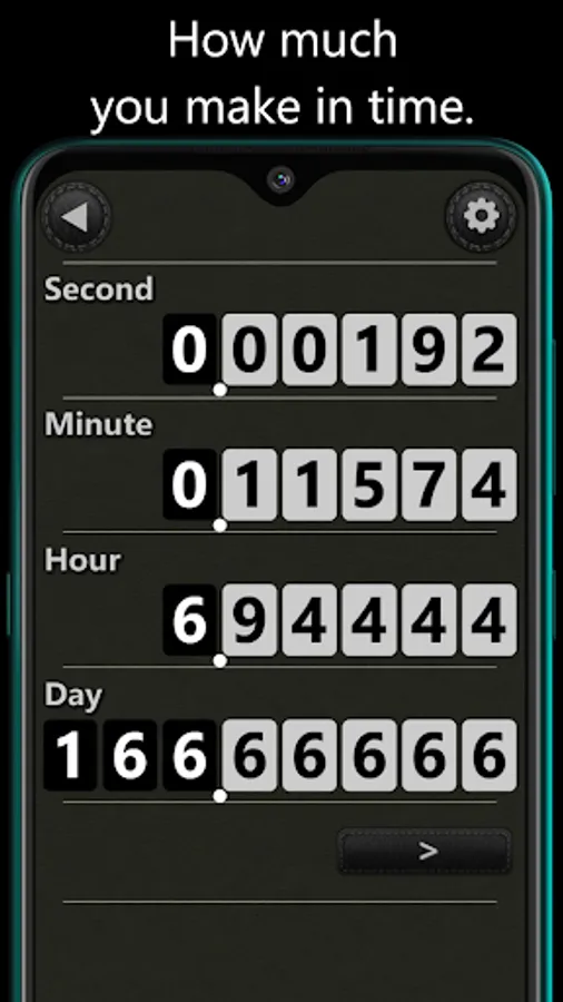 What is your monthly gain at other times? Seconds, Minutes, Hourly, Daily, Monthly and Yearly. Watch all this easily. Start the counter and see how much you've made in the past. If you work hourly, you can easily account for it.