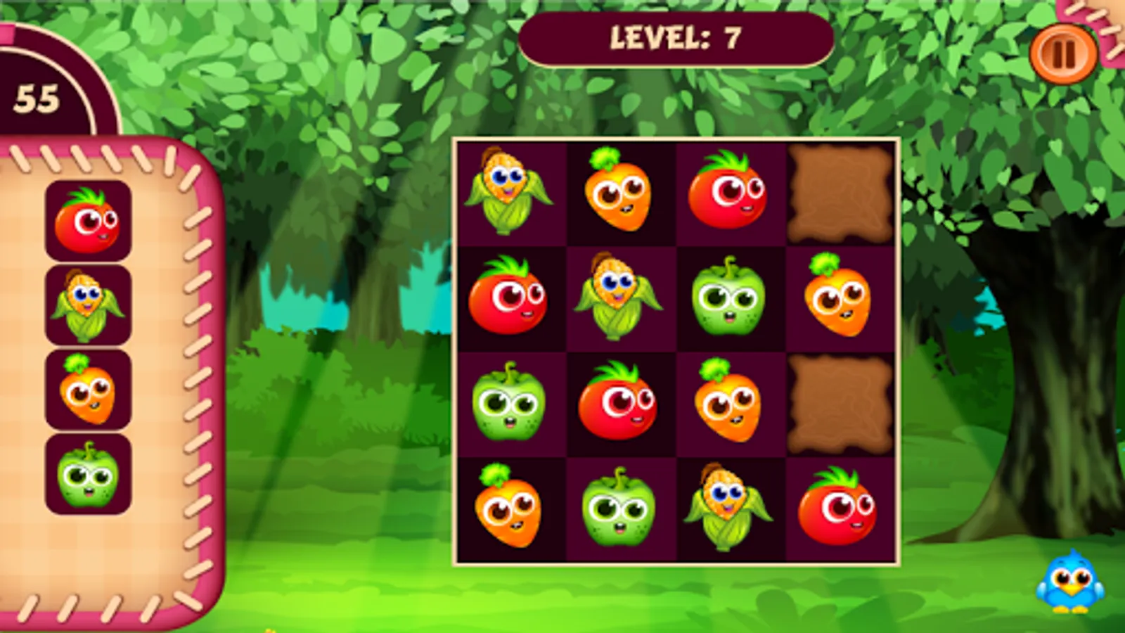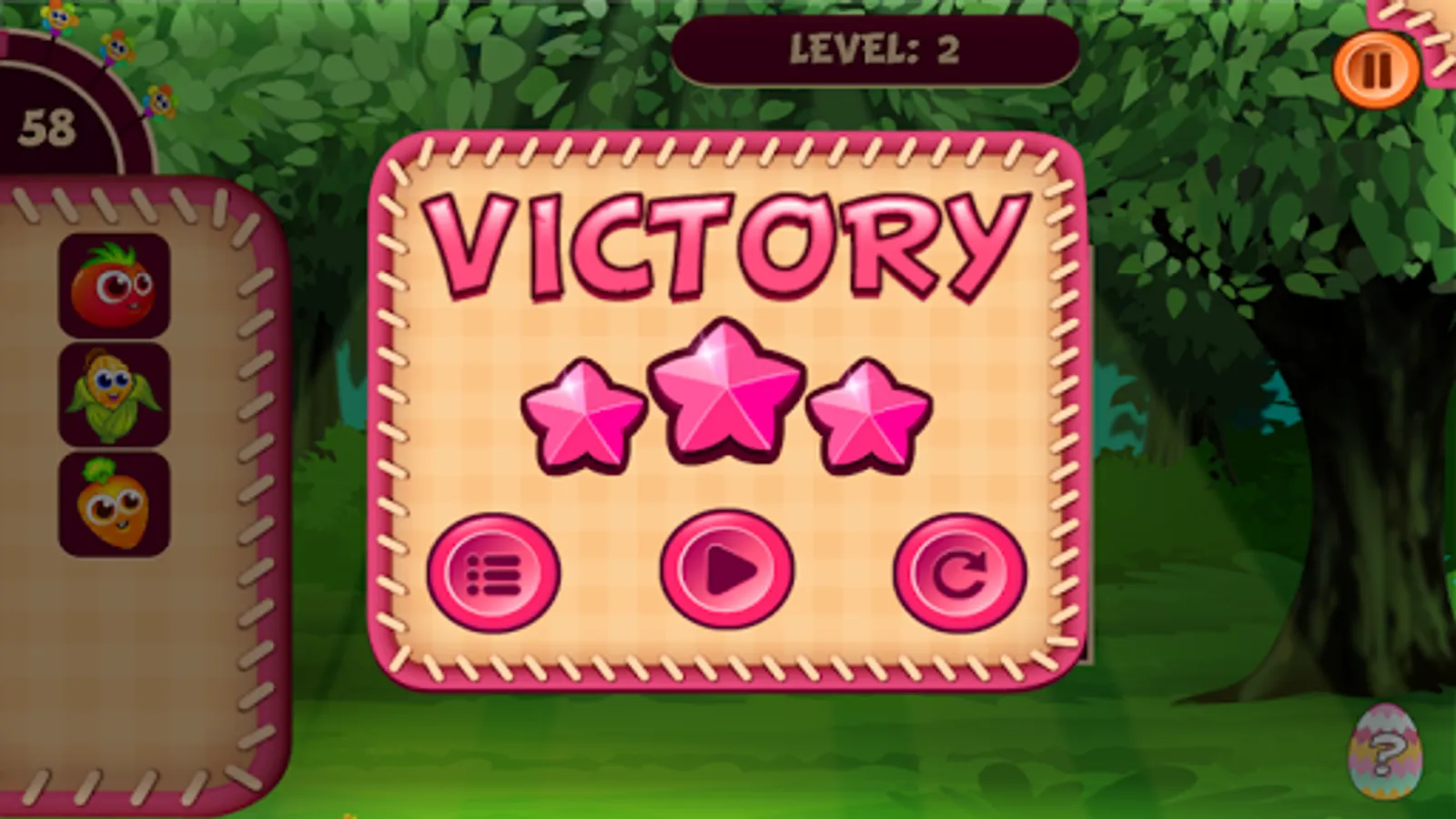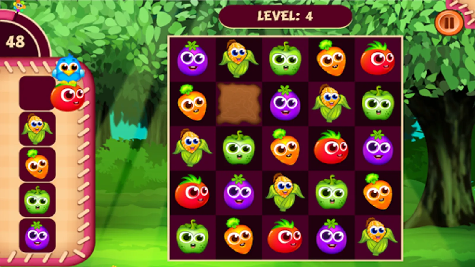 Animated cute vegetables like tomato, corn, eggplant, carrot, bell pepper and onion have been used in the game.