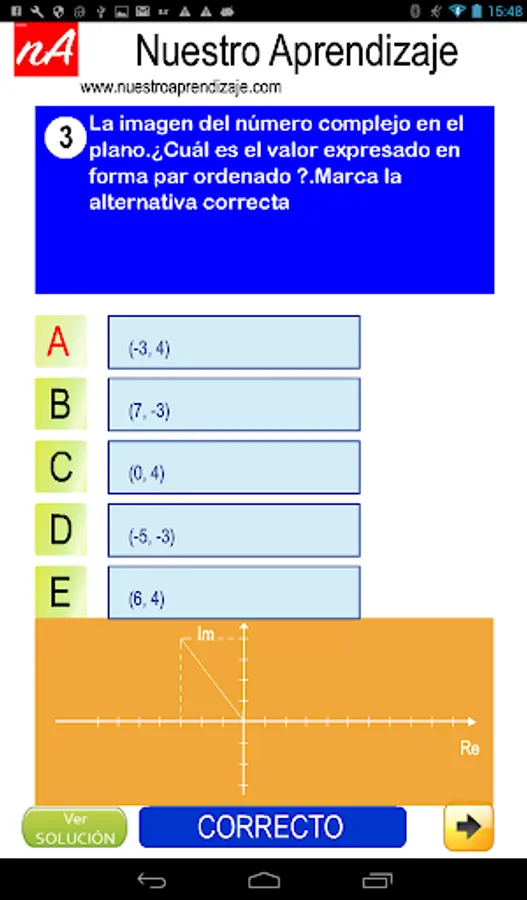 "Complex numbers" content of this application are 10 random questions with your solution.