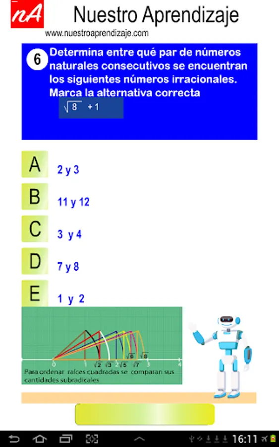 "Irrational representation on the number line comparison and order", the contents of this application are 36 random questions with your solution.
