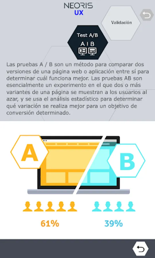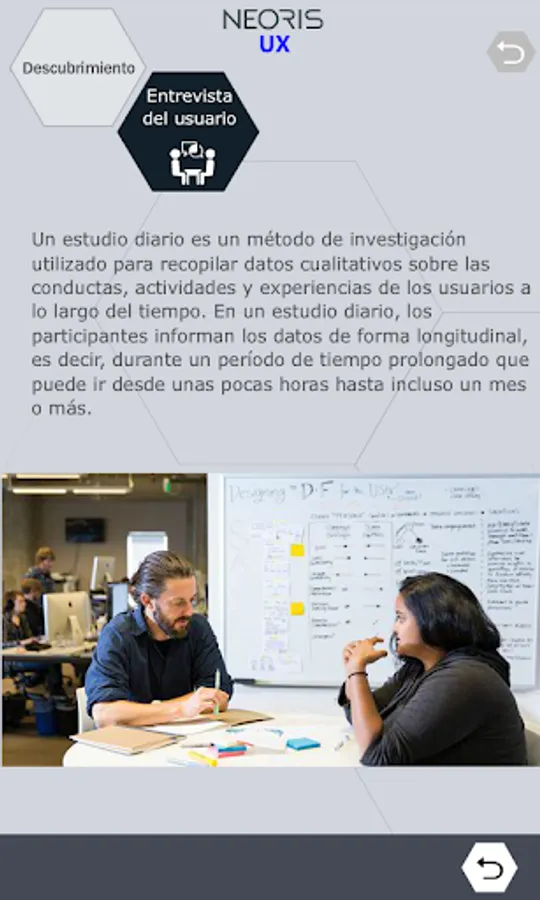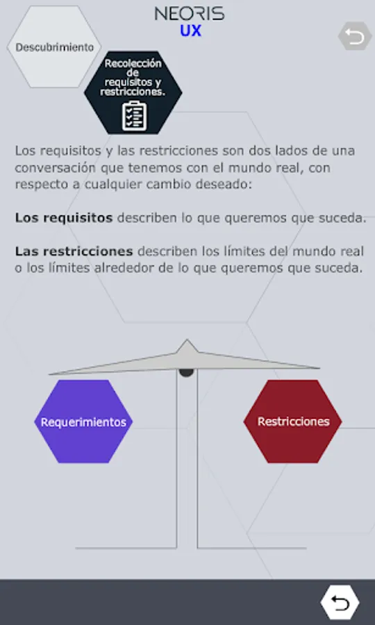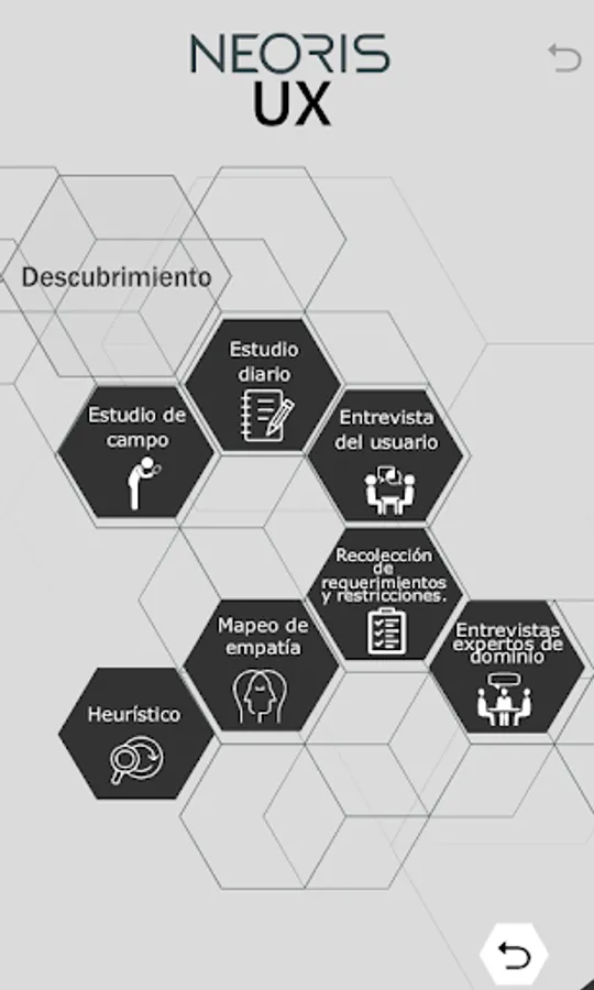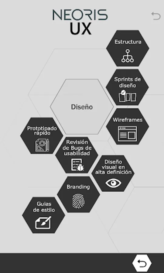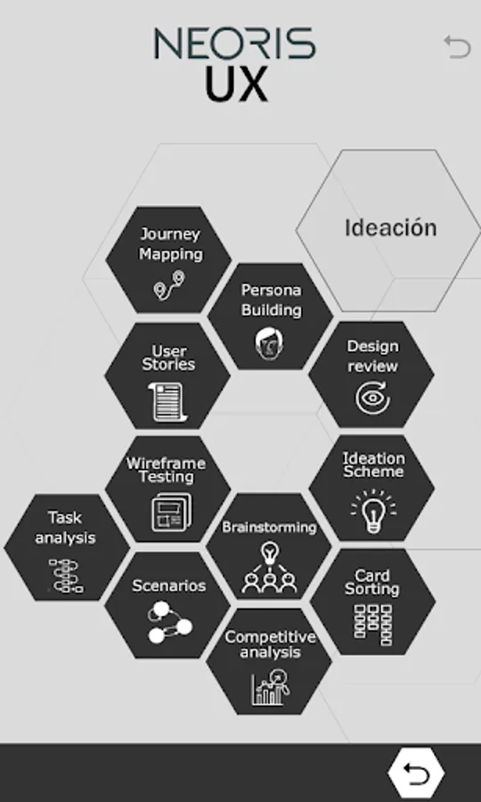 Basic scheme of Neoris User Experience Design (UX) methodology.