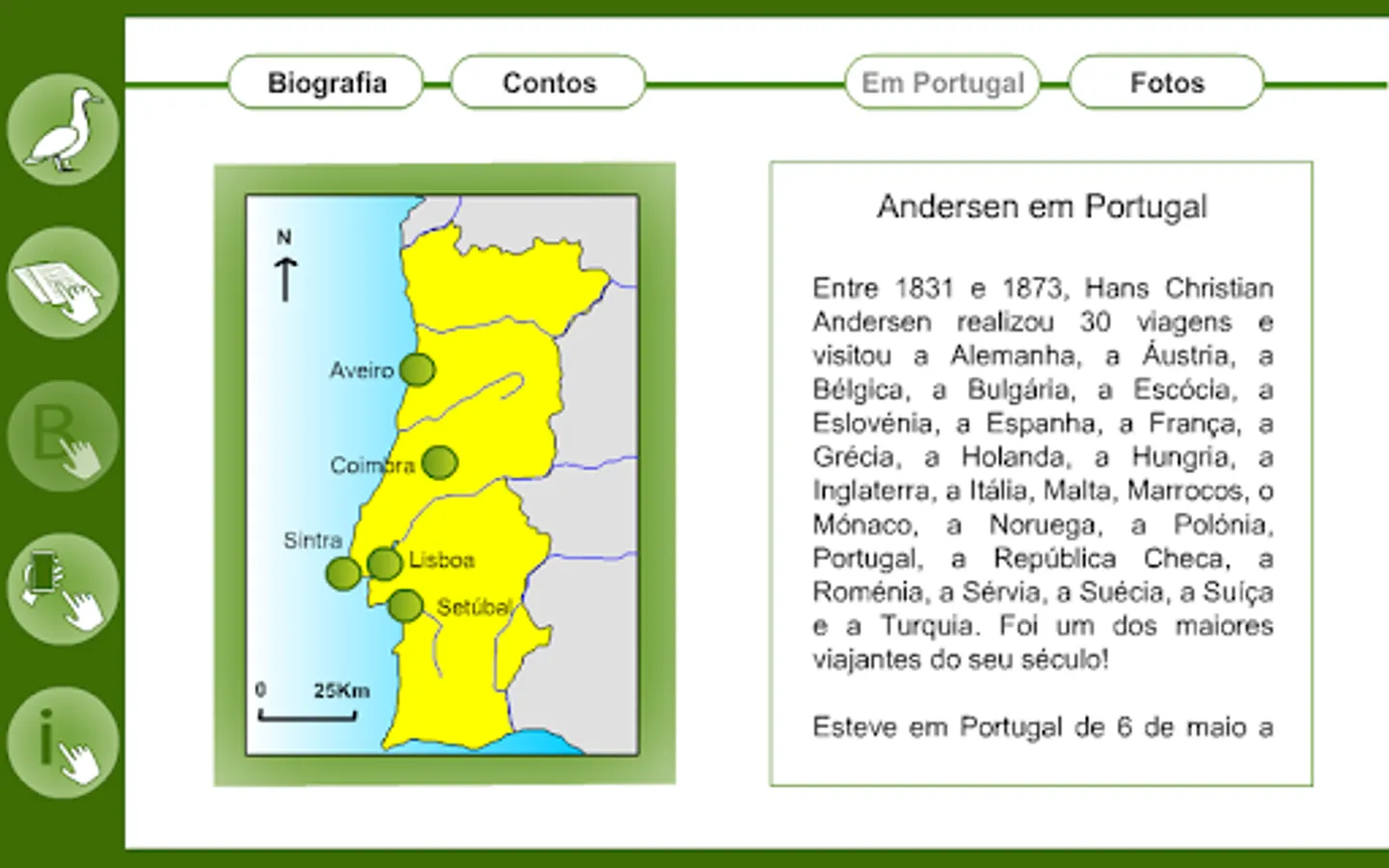 This App is the adaptation of the Hans Christian Andersen tale, to read and hear. In addition to the tale, also includes Andersen's biography, the story of his impressions of the places we visited in Portugal, photographs of some of his portraits, local designs that visited and also photographs of the cut papers he liked to go doing while telling stories.