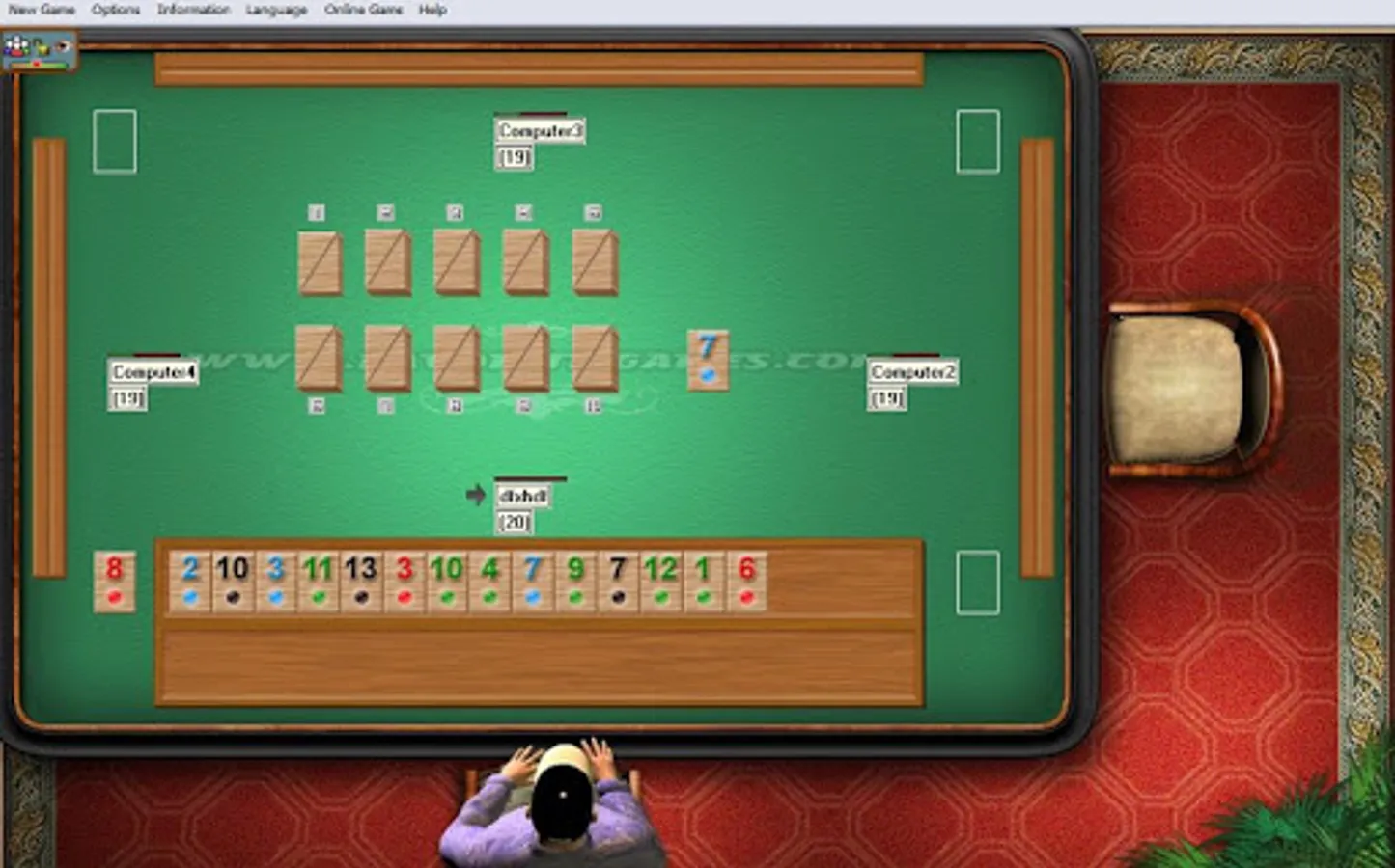 The players are making moves counterclockwise. Then plays the second player, who can take the tile, left by the previous player (the player who is on his left side) or to withdraw one tile from the heap in the middle (those tiles, which are not given to the players) and then also cleans one tile. Then plays the third player and after him, the forth player. That is the way to make round after round until the moment when one of the players “close” (order the tiles in series/groups as it is in the rules) or the tiles are finished.
