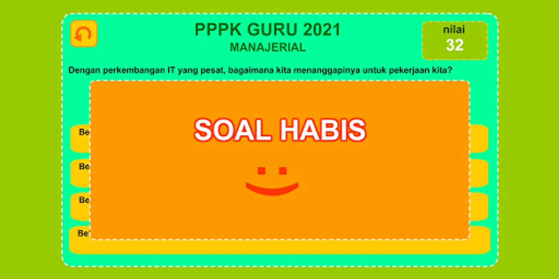 The PPPK GURU 2021 MANAJERIAL application is a question practice application to support prospective participants in learning Managerial competency practice questions so that test participants are better prepared to face the PPPK GURU 2021 Managerial Competency Examination. This application is made specifically for PPPK GURU in learning PPPK practice questions. In this application there is a question bank that is randomized so that teachers can practice better. Hopefully this application can be useful for all TEACHERS who take the PPPK exam.