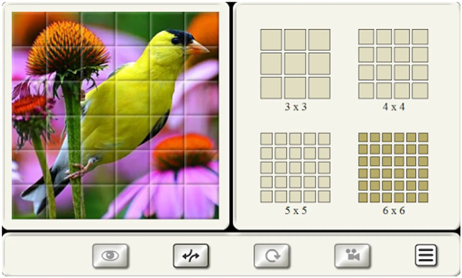 Puzzles is a fun puzzle game designed for all ages. To make it interesting, you need to have a large number of different puzzles. In our game, everyone can find an interesting topic -wild and domestic animals, flowers, birds, insects, reptiles, monkeys. Each theme contains 18 photos with different levels of difficulty.