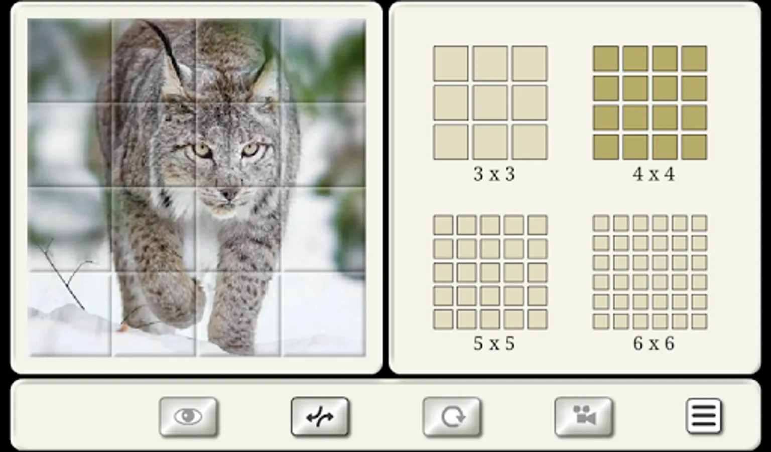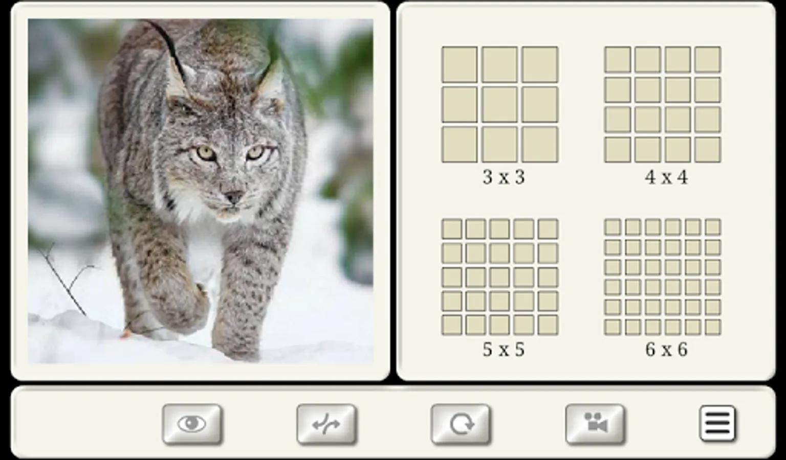 Choose a theme and a picture. To" cut " the picture, select one of the levels: