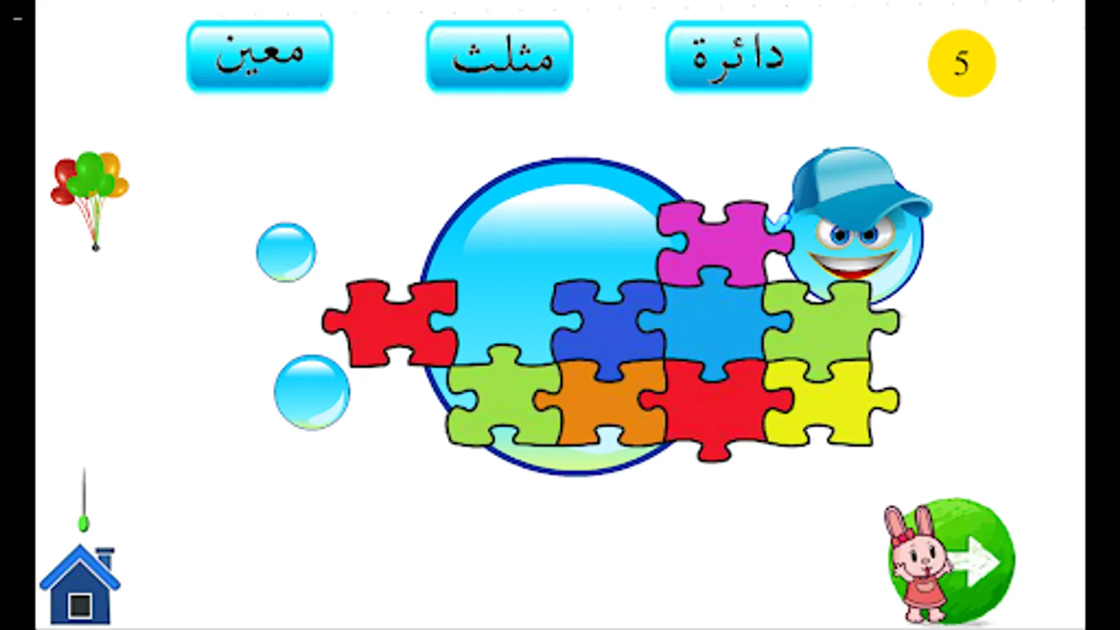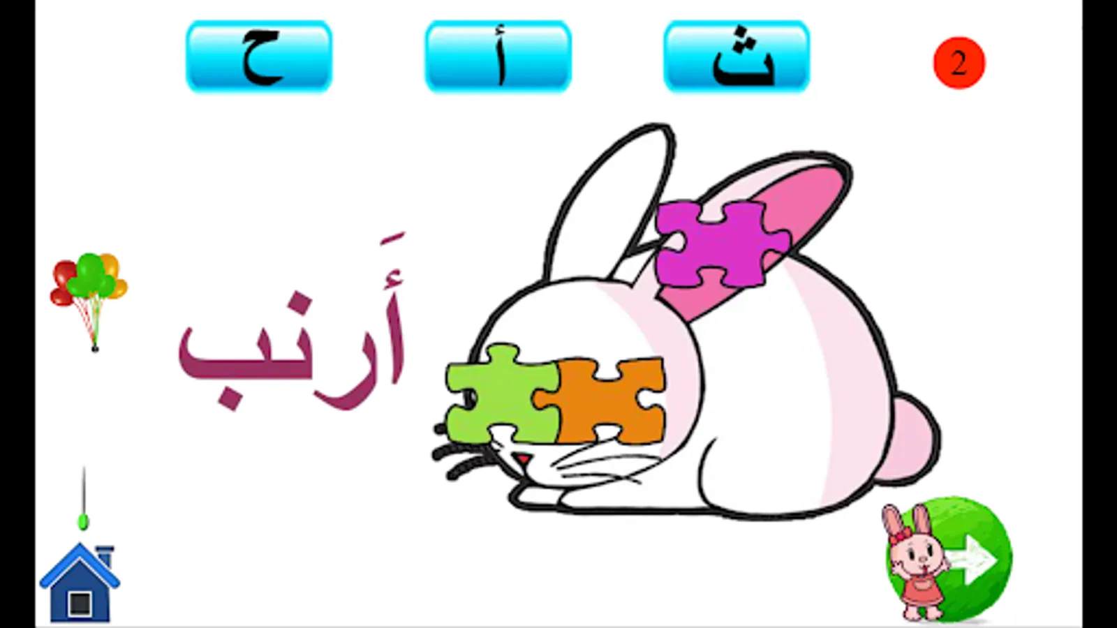 Through which he learns numbers, Arabic and English letters, colors and shapes.