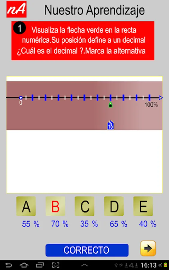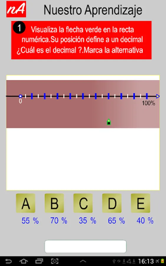 This application is an interactive guide to develop content percentages and representation on the number line.