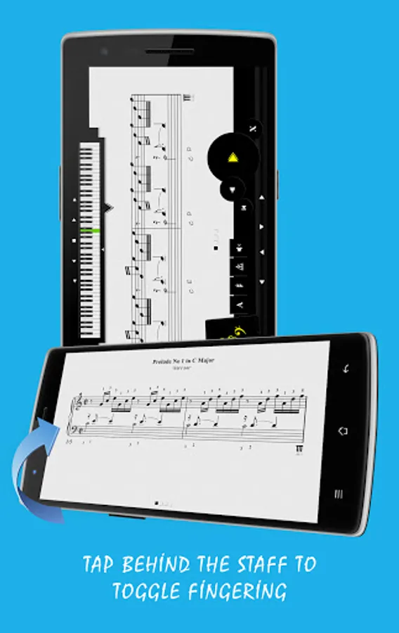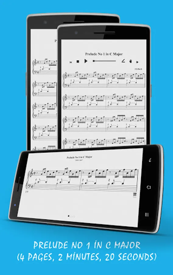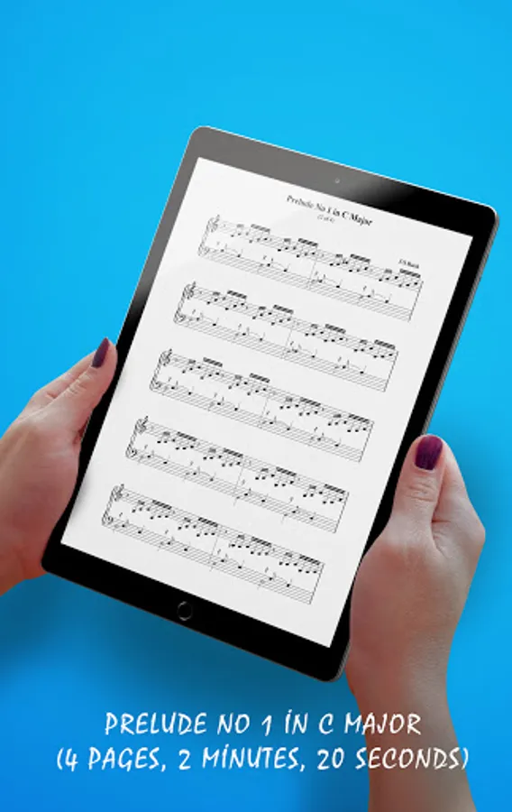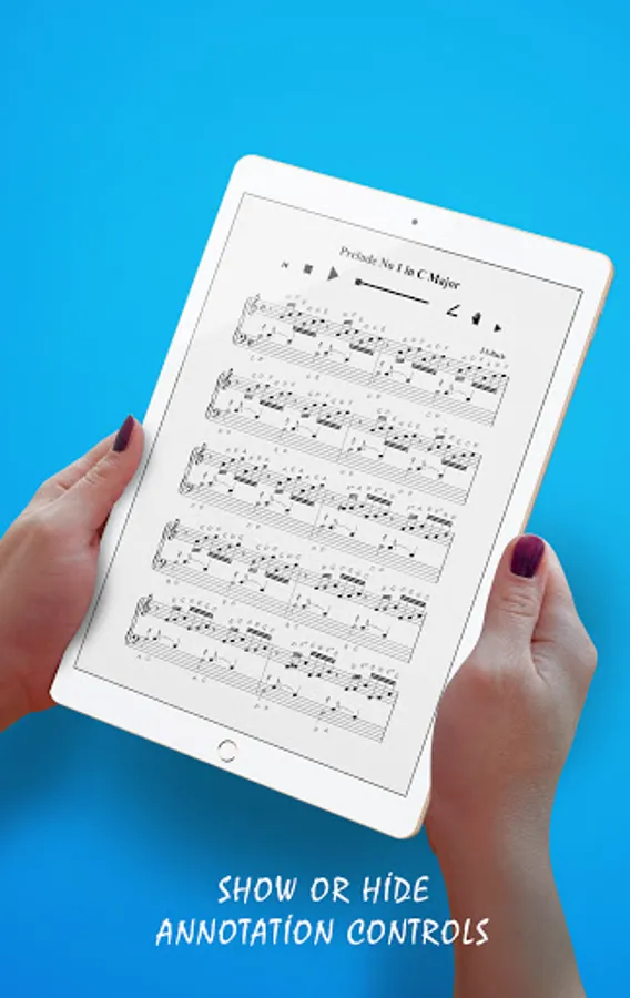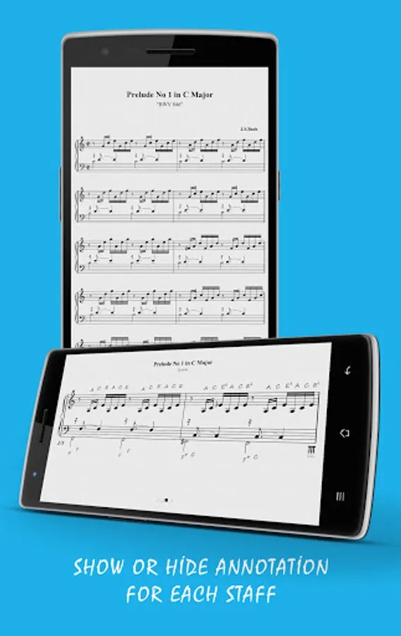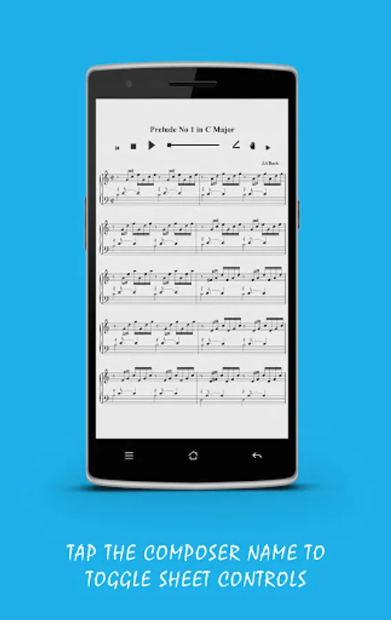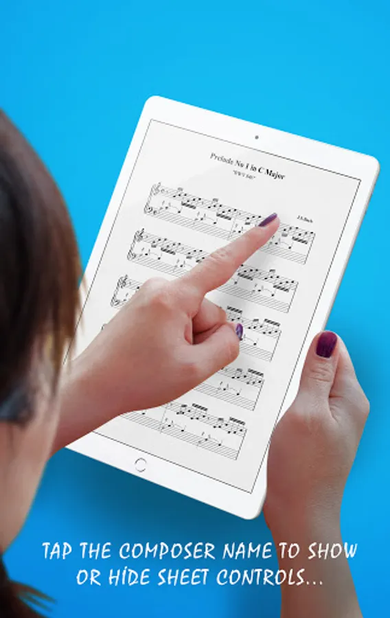 Piano Sheet Music App with interactive features hidden from view upon launch yet quickly accessible when you need them. Tap on the composer name (J.s. Bach) to show or hide annotation and fingering or play audio from specific parts of the songbook.