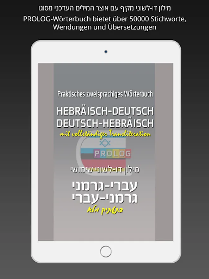 This comprehensive PROLOG HEBREW Dictionary offers over 50000 headwords, phrases and translations.