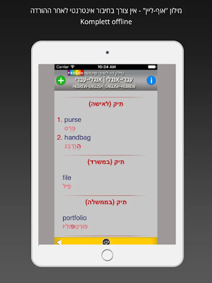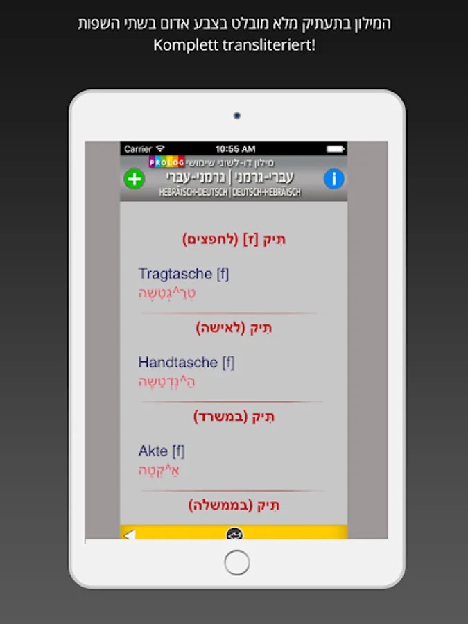 GERMAN - HEBREW Dictionary | Prolog.co.il | מילון גרמני - עברי | פרולוג