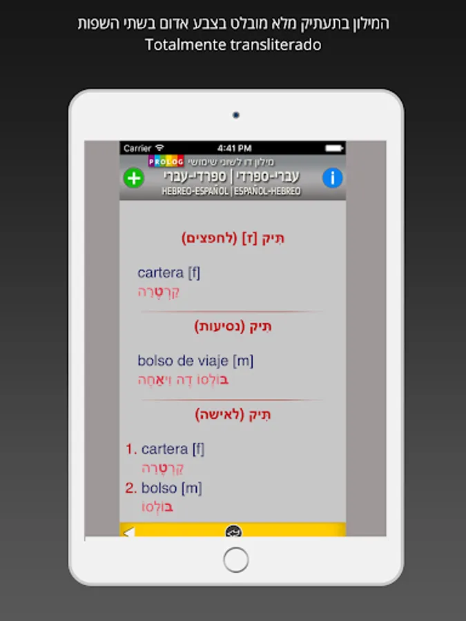 HEBREW - SPANISH Dictionary | Prolog.co.il | מילון עברי - ספרדי | פרולוג