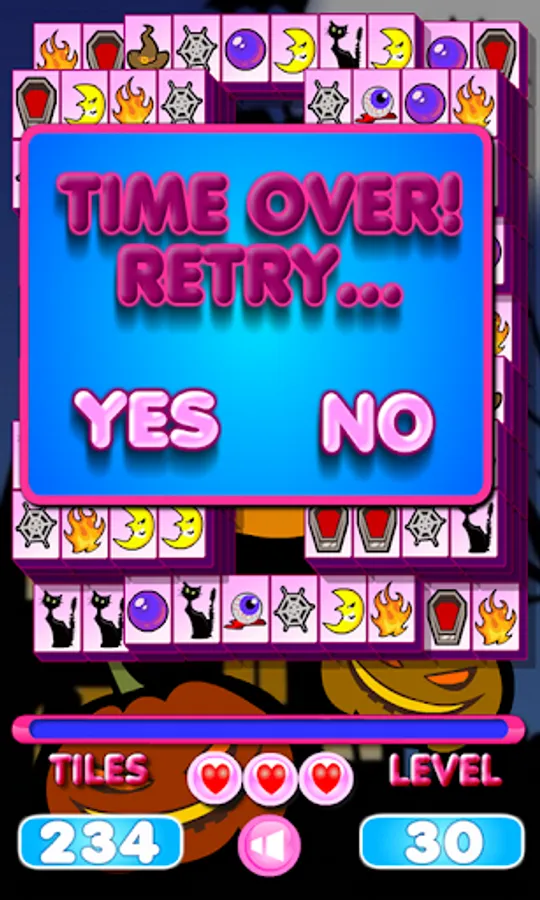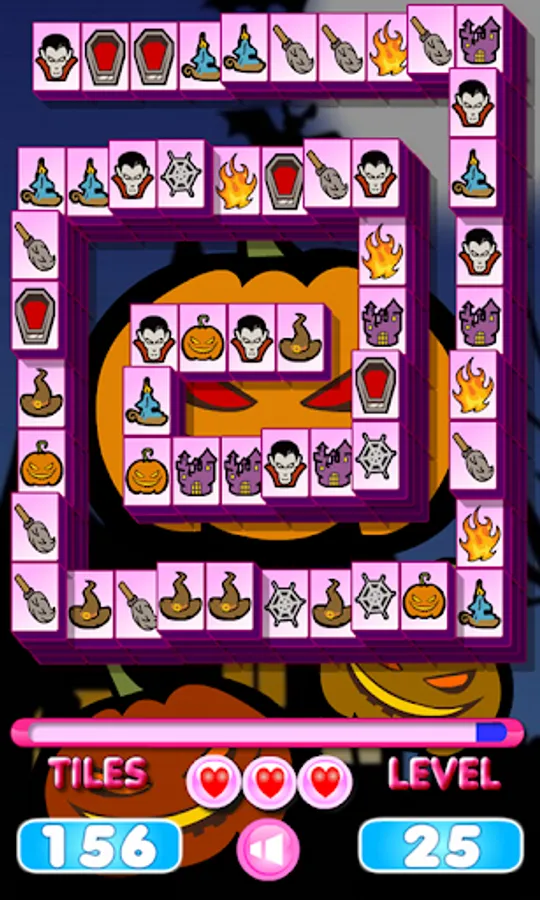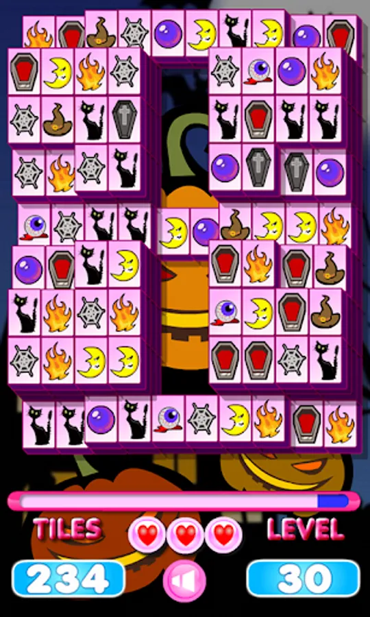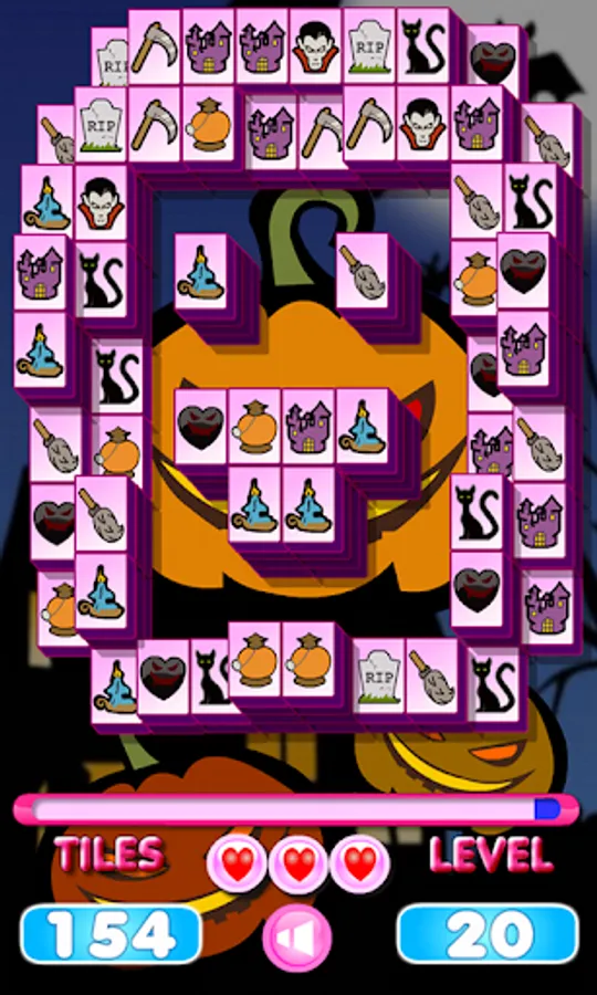 Mahjong is a fun game as you know. You try to eliminate pairs of tiles with the same drawing of the Board with the condition that there is not another piece at left or at right. Mahjong involves skill, strategy, and calculation and in this occasion our Mahjong is inspired by this time of year so special: Halloween.