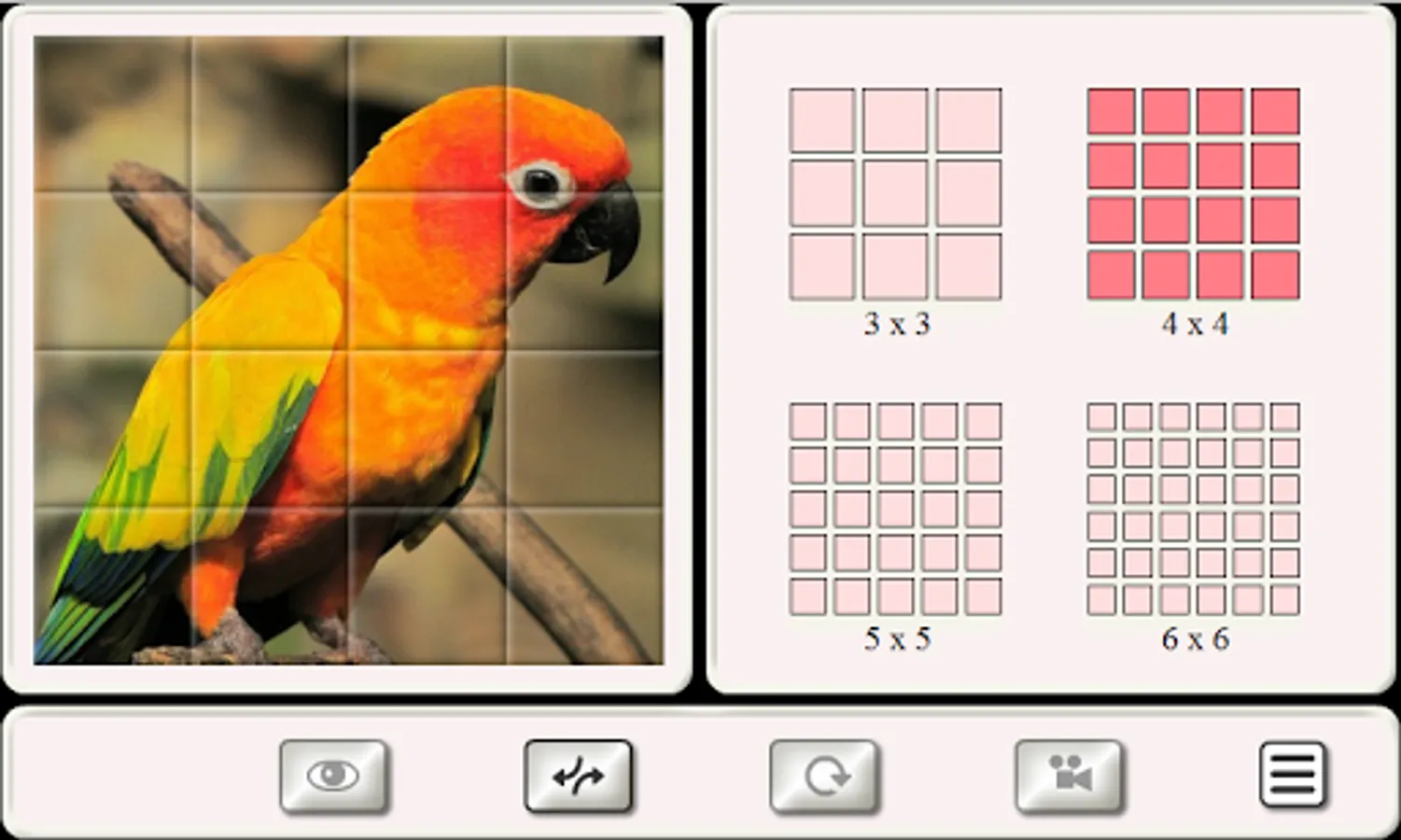 – 4 levels of difficulty puzzles-3x3, 4x4, 5x5, 6x6;