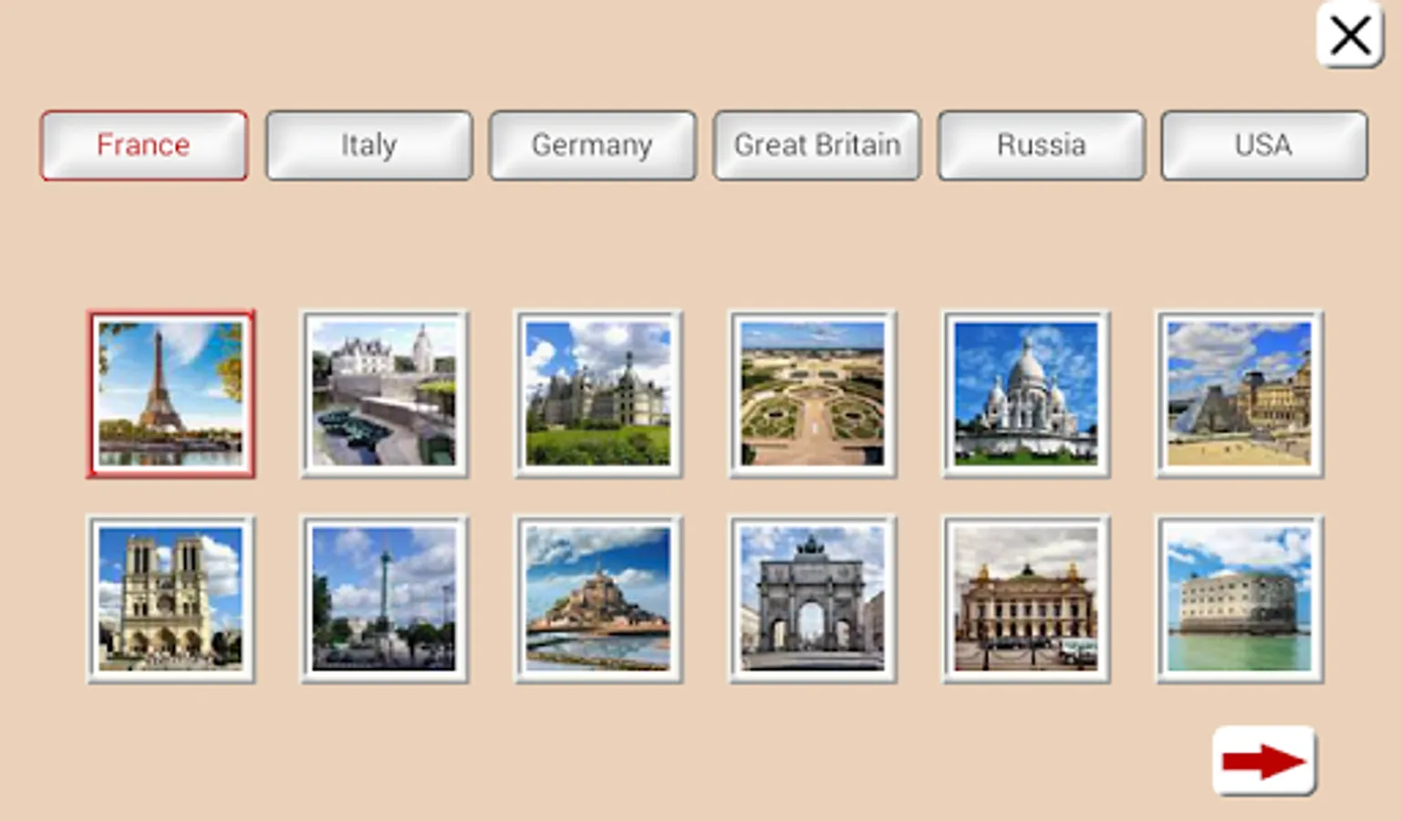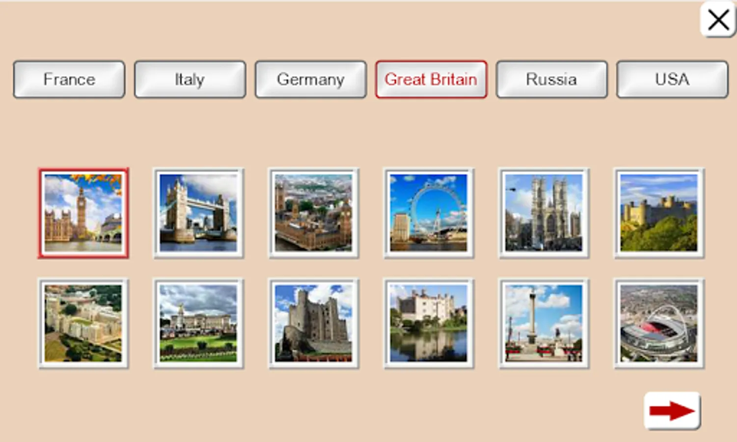 "Guess the Country: Tile Puzzle” - an interesting and informative game for children and adults. Here are collected beautiful photos of architectural and cultural attractions of famous countries: France, Italy, Germany, Great Britain, Russia, and the USA.
