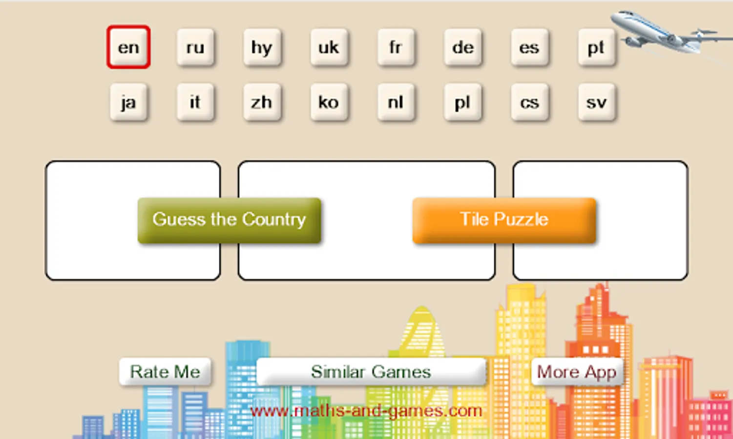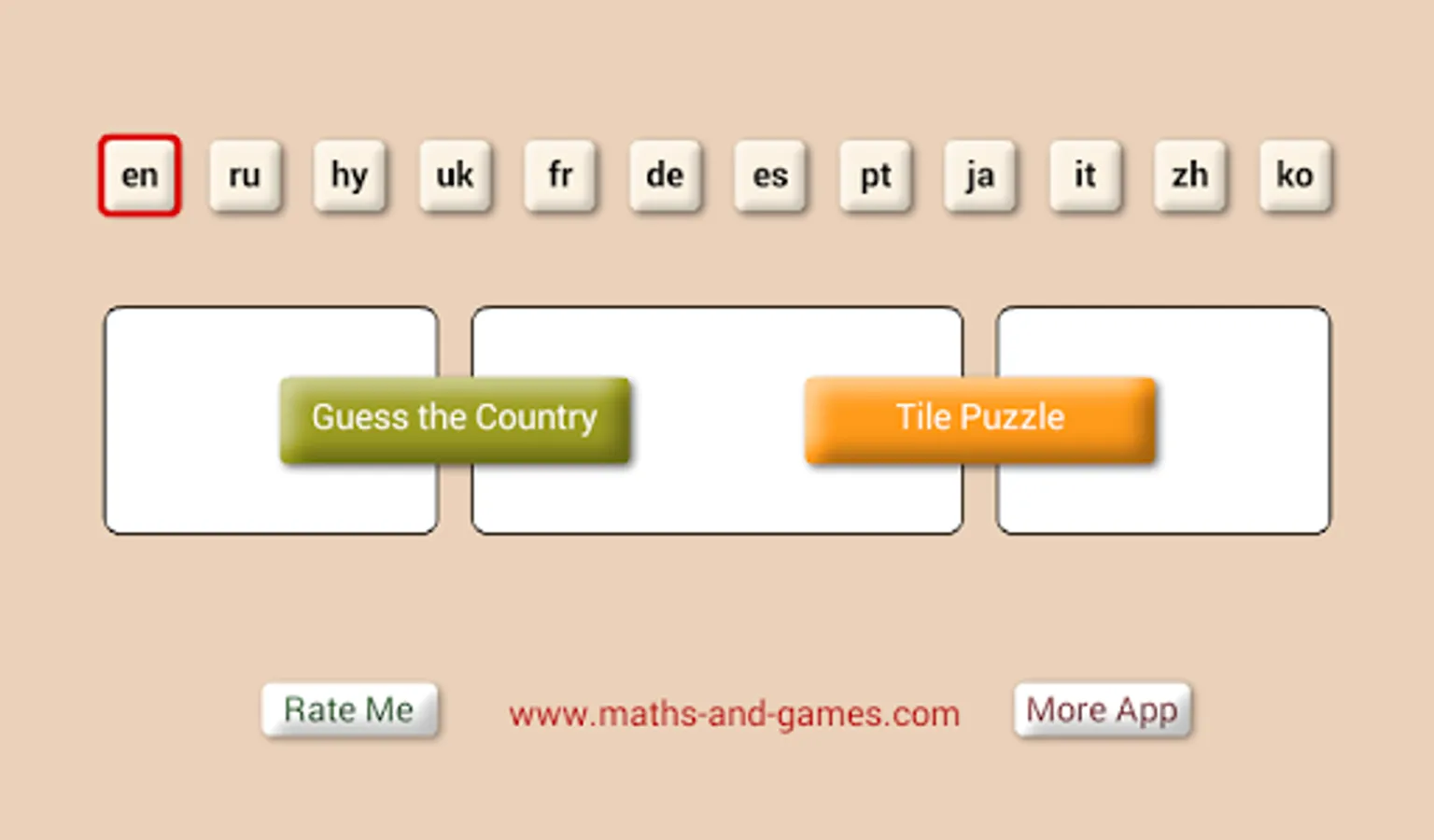 The game consists of two parts: “Tile Puzzle” and “Guess the Country.”
