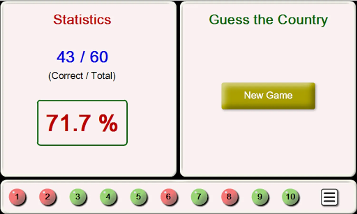Do you have a picture to guess the country of the 3 proposed options? For each correct answer, you get 1 point. After you guess 10 photos, you will be able to see statistics –the number of correct answers and the number of all photos of countries, as well as the percentage of correct answers from the total number of photos of countries.