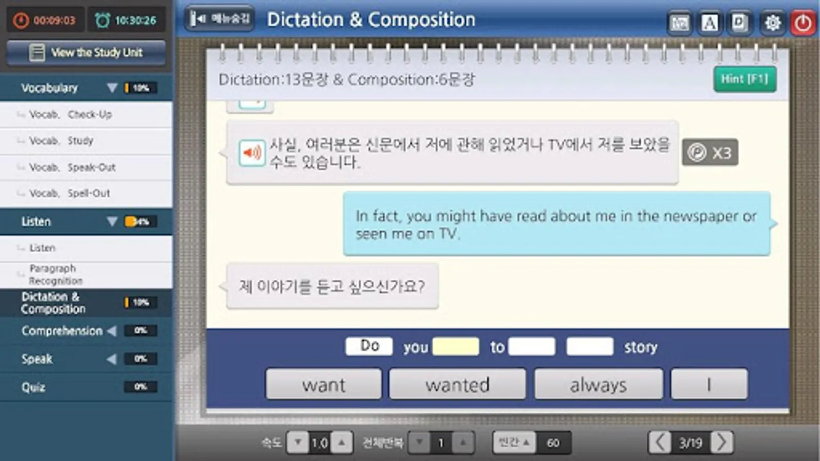 - and lead to student interest in various designs depending on the grade level (elementary, middle) learners, to apply different learning methods in accordance with the level maximizing the learning experience. (However, the voice recognition learning methods Reading and Listening is only available in the PC version).