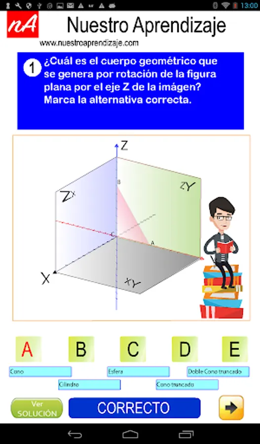 "They identify geometric shapes generated by rotation plane figure" contained in this application is 5 random questions with your solution.