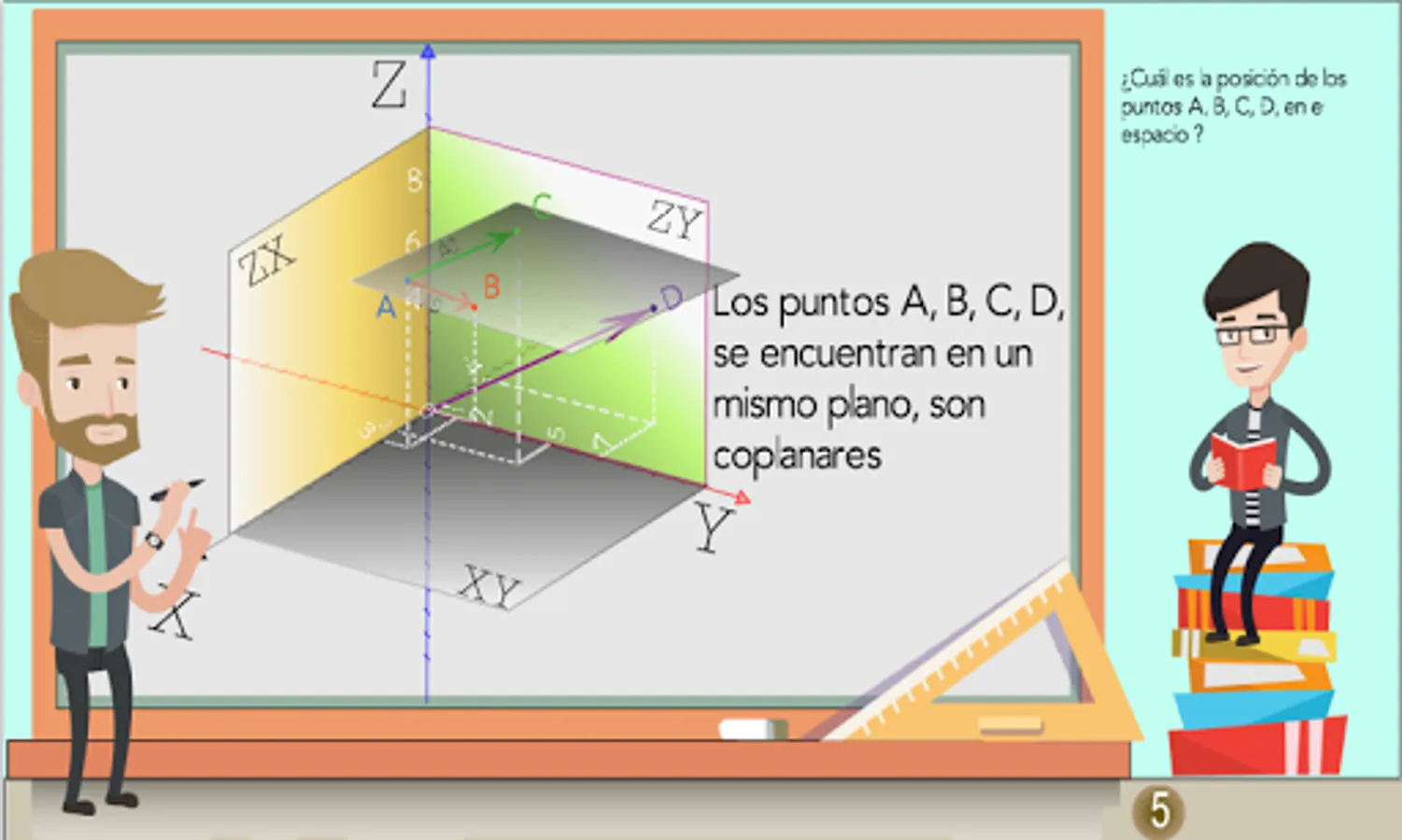 "Identify and describe planes in space" content of this application is 5 random questions with your solution.