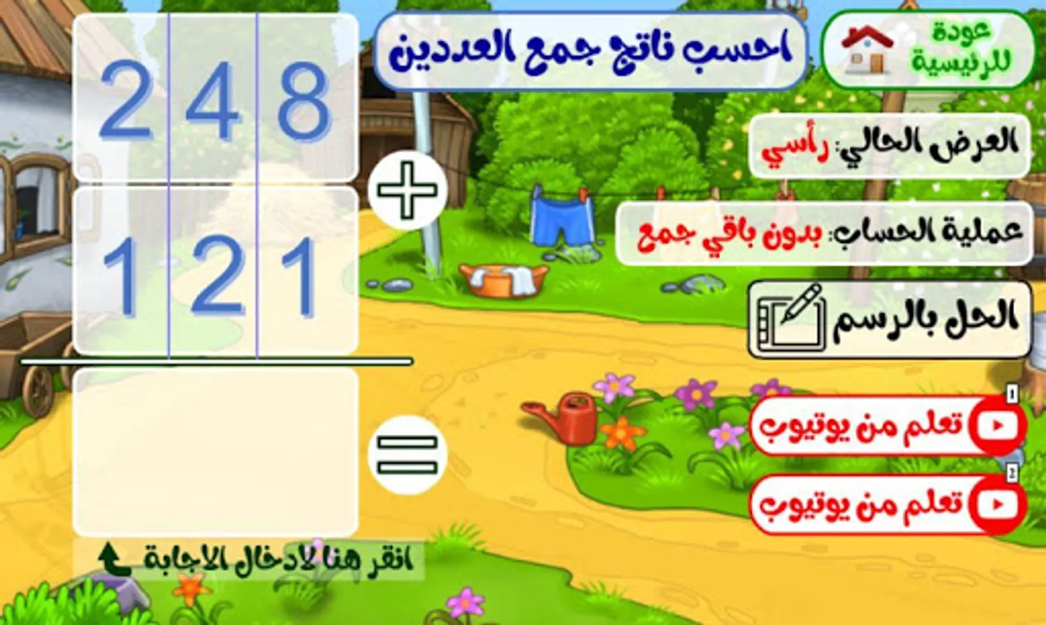 ⭐ Sum two numbers within 99 or within 999 with the choice of whether to sum with the rest (with the load) or without the rest of the summation (without the load). In addition to supporting a free drawing tool to give the player the freedom to write on the screen as well as the possibility of displaying portrait or landscape.