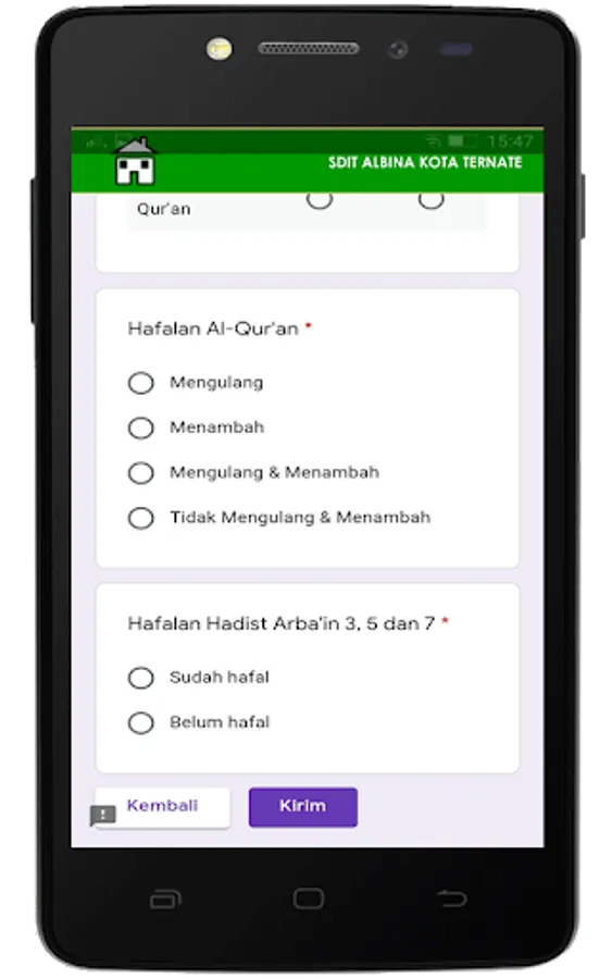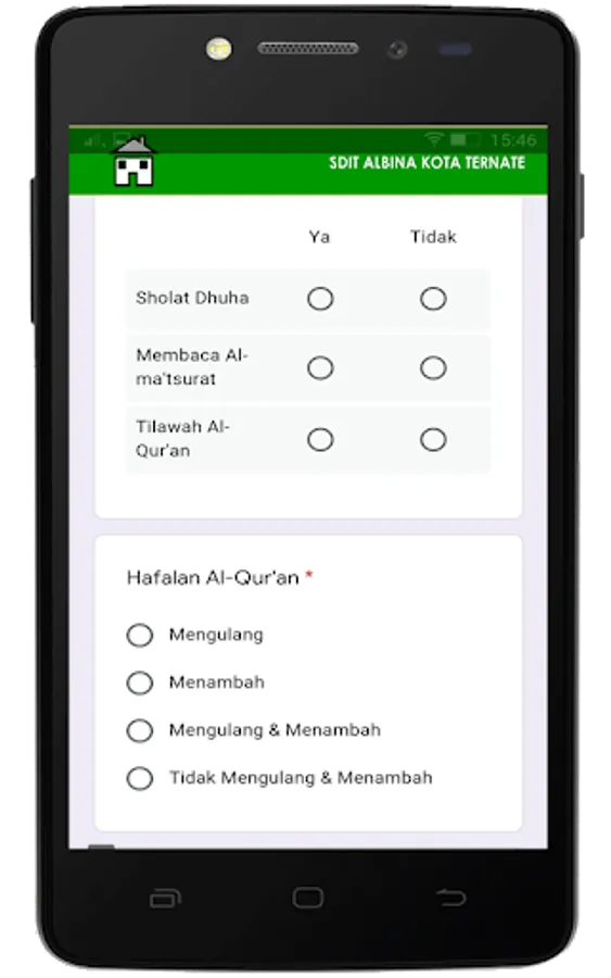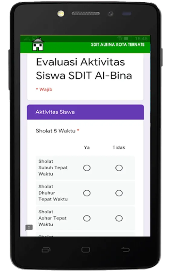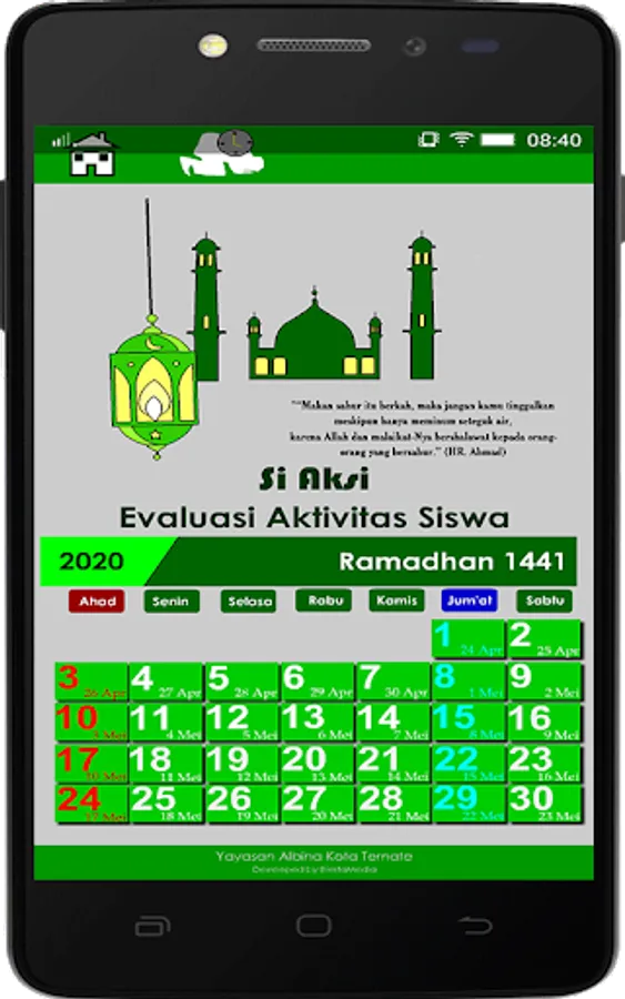>> For students, this application is used to input daily worship activities such as prayer 5 times, sunnah prayers, recitations, memorization, etc. By always inputing worship activities from day to day, students will proceed to form good habits (good deeds) and eventually the habits will become a character.