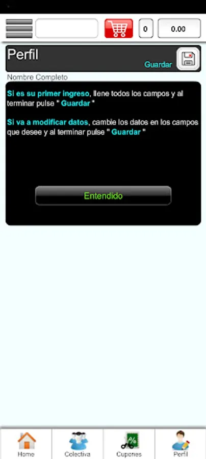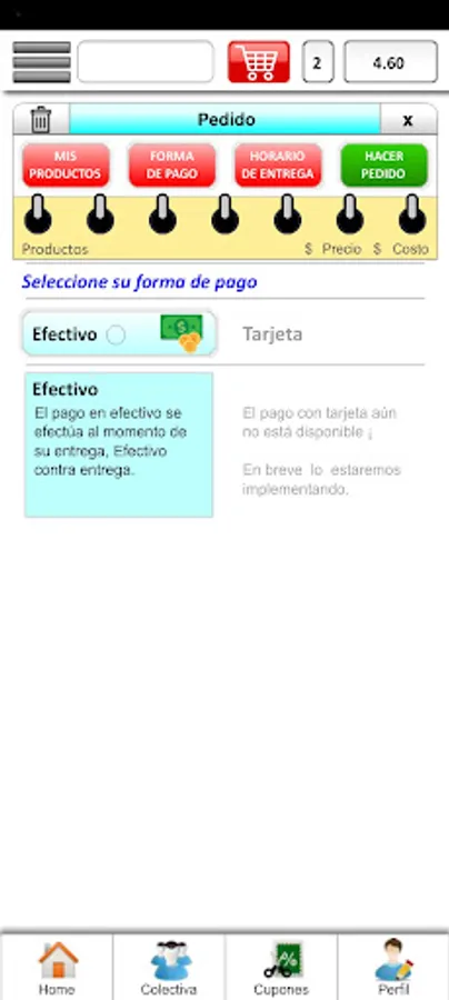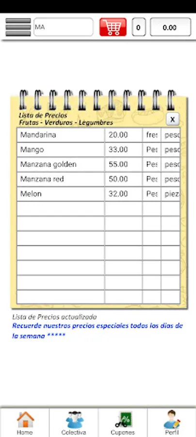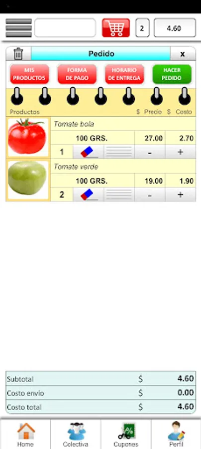 Application for the purchase of food products, which may be delivered at home, or at a specific address to suit the client.