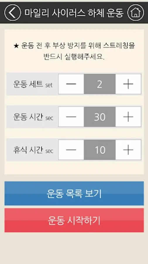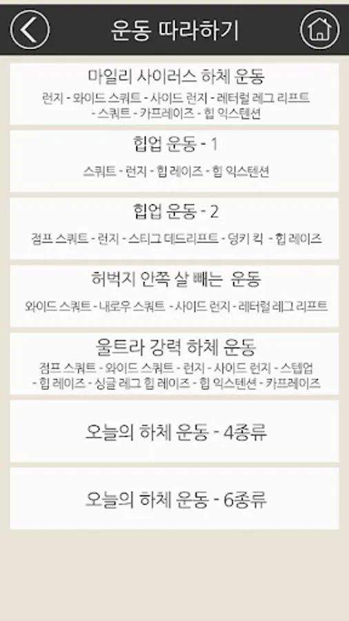 - Exercise List - Provides detailed instructions and precautions about exercise with exercise videos. You can also exercise by choosing the exercise you want to do.