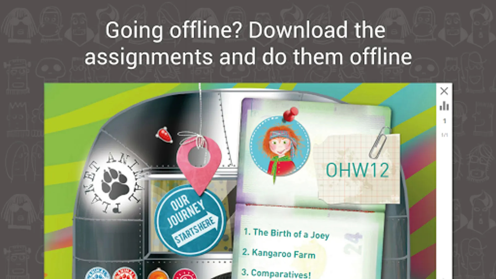 Going offline? You can download the assignments while you are connected and do them offline later. The marks you get on the assignments will be saved on your device and sent when you are back online again.