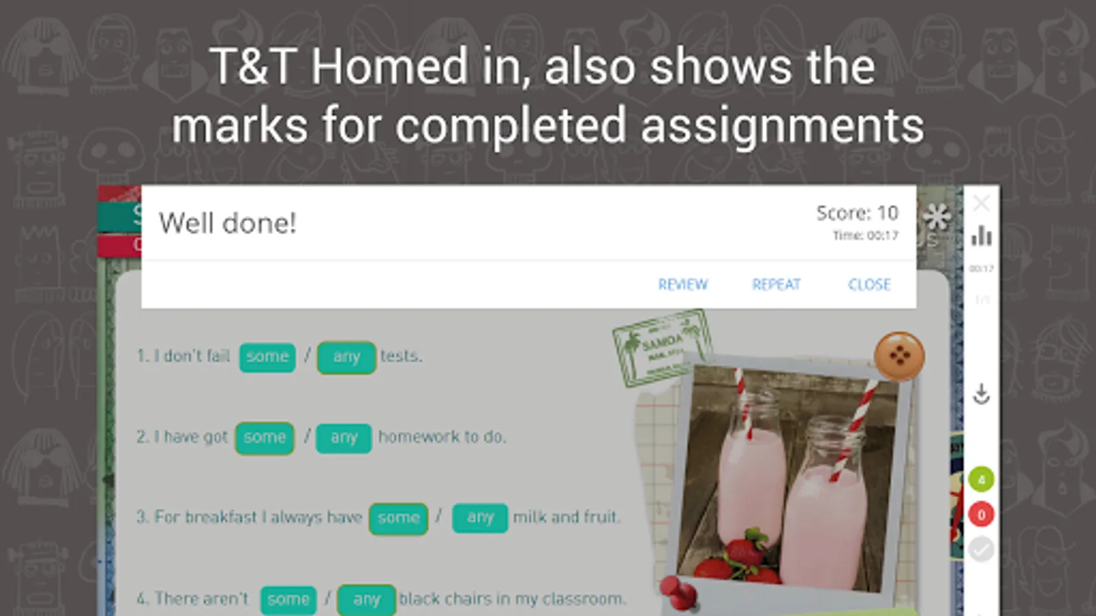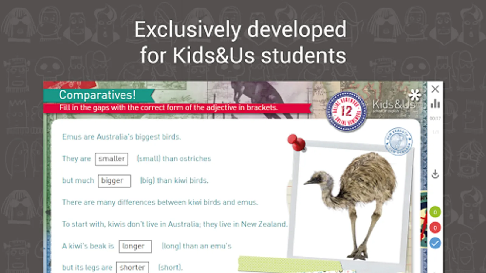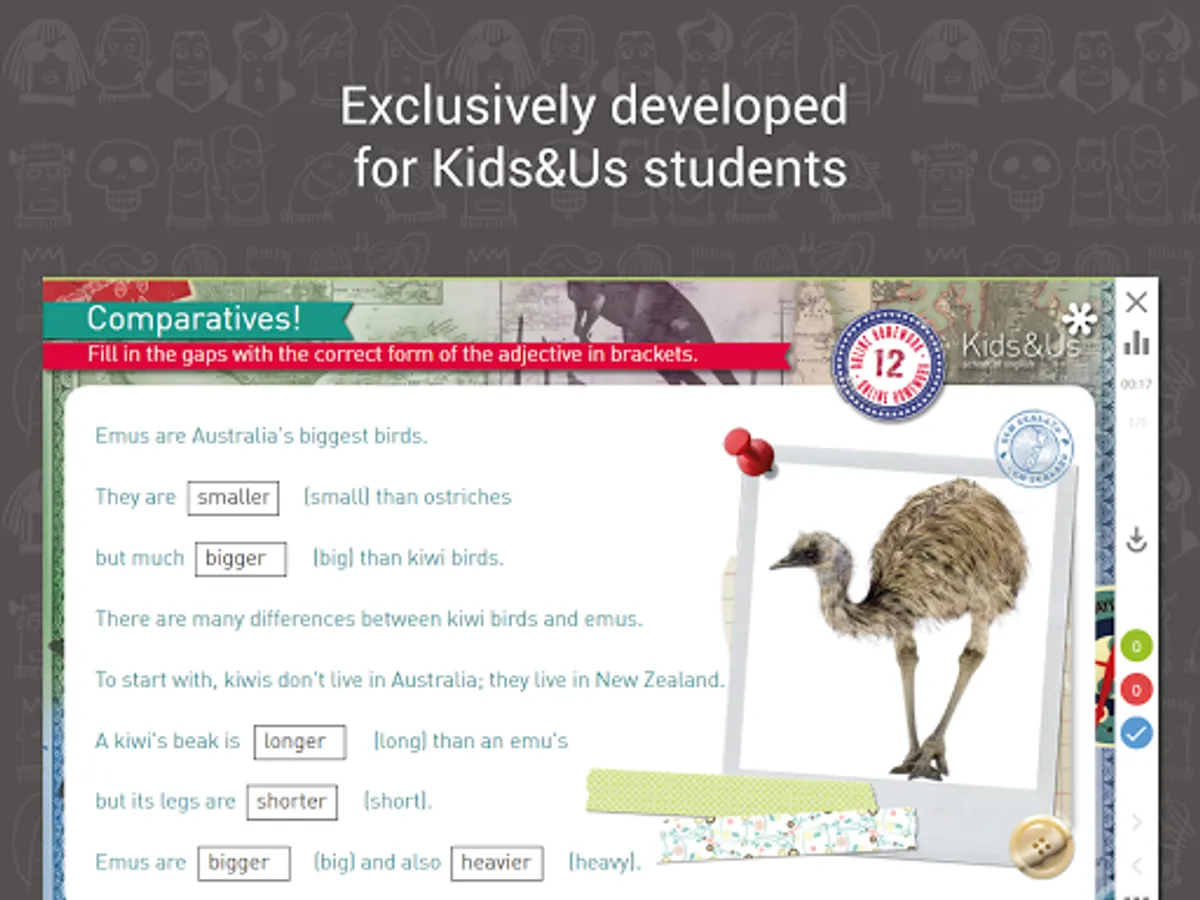 If you are a parent or student of Tweens & Teens courses at a Kids&Us language school, download the app to access the online homework assignments from your tablet or smartphone. The app also shows the marks for completed assignments.