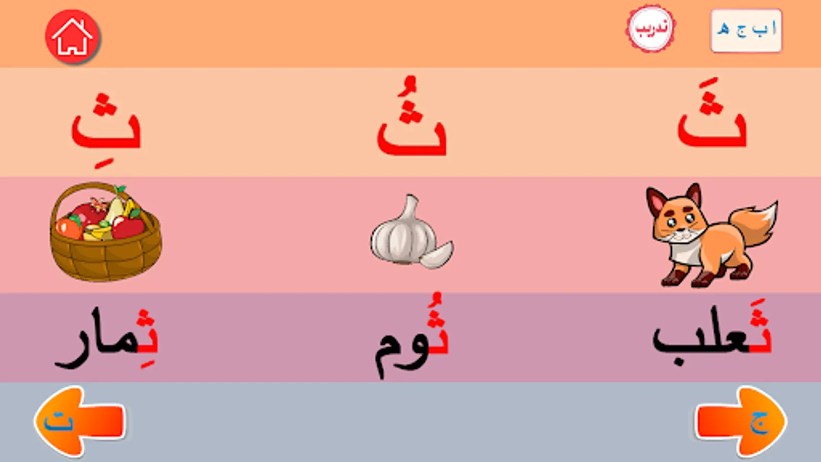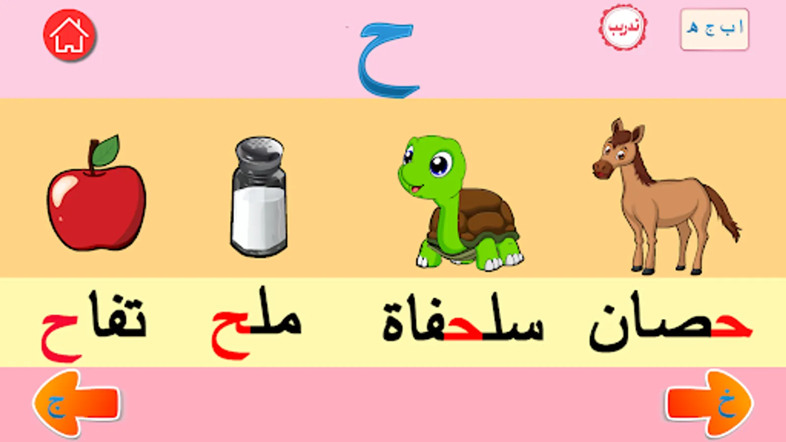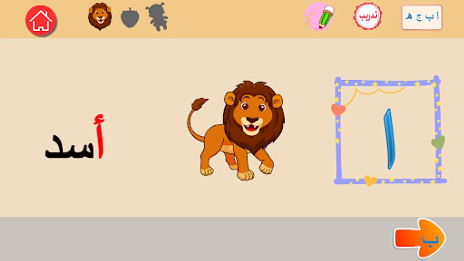 Each letter has a picture with the pronunciation according to the type of animal, plant and inanimate