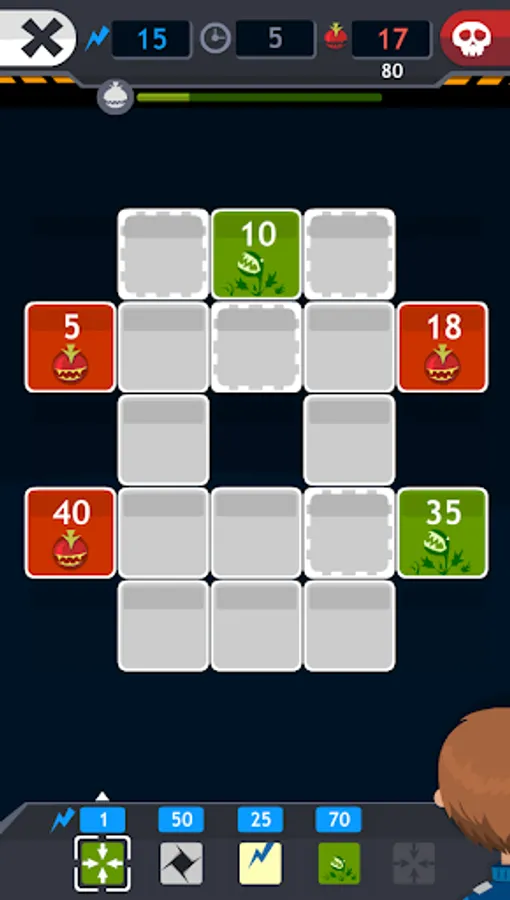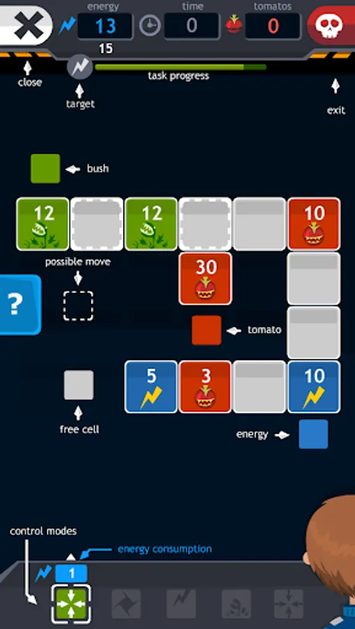 Research ship...To provide food for the personnel, in addition to the food warehouse on the ship, a greenhouse is deployed where vegetables and fruits grow... Scientists are experimenting with tomatoes to obtain varieties that are resistant to radiation...Something went wrong...Tomatoes are steel crawl around the ship, eating everything in its path...Dangerous intrusion of tomatoes into the zone of energy blocks...Found a way to destroy tomatoes with the help of bushes...The most capable employees were sent to clean up sectors...