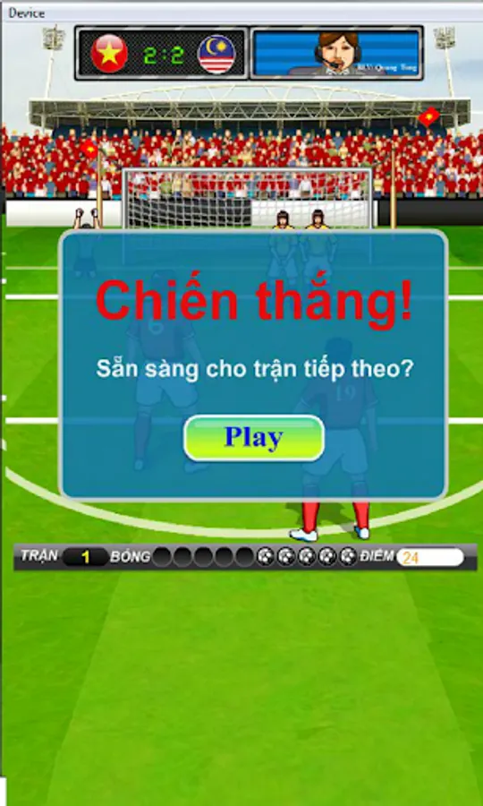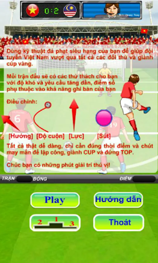 All in Viet Nam - Vietnam, a great football simulator game. You play the national players, using the ability to kick the fence of his virtuosity, defeating all opponents, winning the Gold Cup, bringing glory to the country.
