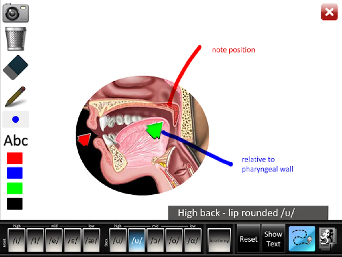 The Speech Articulation: Vowels Front/Back app authored by Fred D. Minifie, Ph.D, provides valuable instructional/clinical tools for speech-language pathologists, otolaryngologists, speech scientists, linguists, teachers of singing and other professionals. The app includes five front and five back vowel dynamic animations with sound plus a key view for each of the tongue shape and placement for the structural movements involved in the production of the front and back vowels of American English.