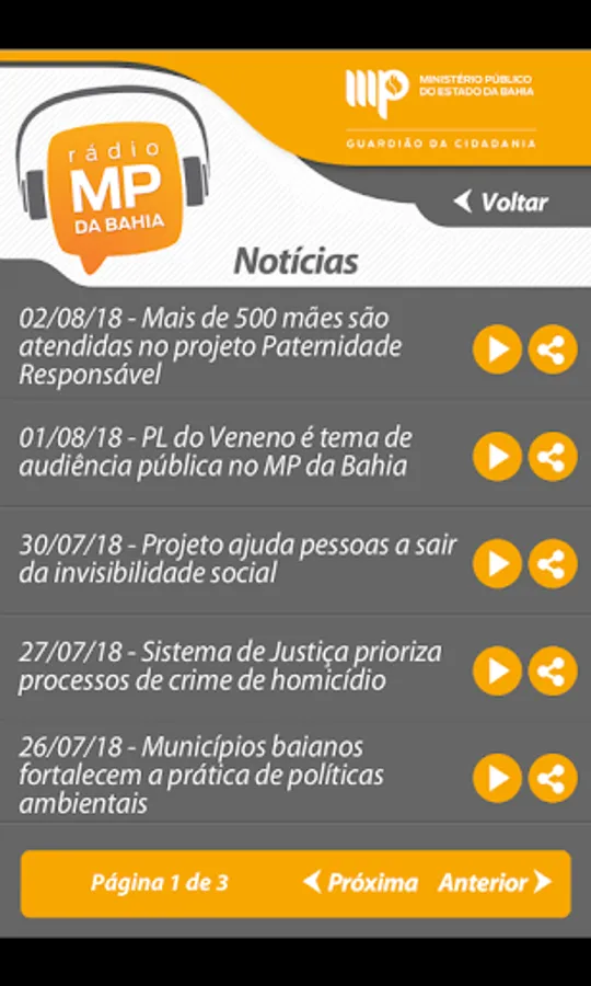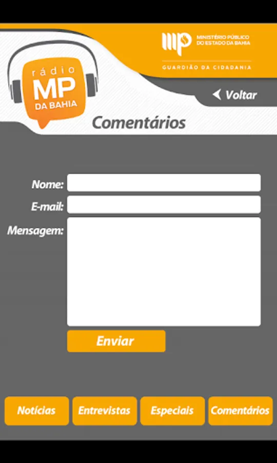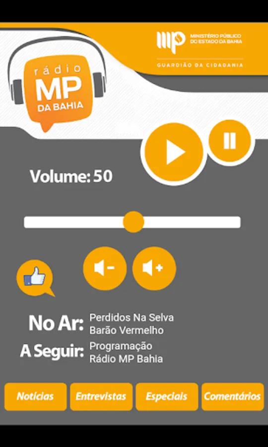 Radio of the Public Ministry of Bahia. Channel 24 hours in the air taking to all the citizens information on the institution and news of the action of the Promoters and Attorneys of Justice. Music, interviews, daily programs and interactive space for comments and musical suggestions.