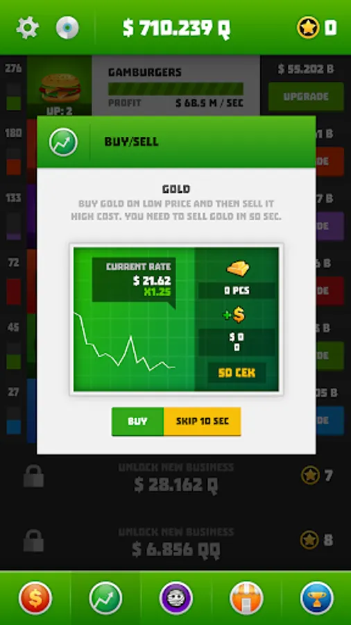 Grow each business that you unlock to earn more money. An awesome addition to the business games genre.
