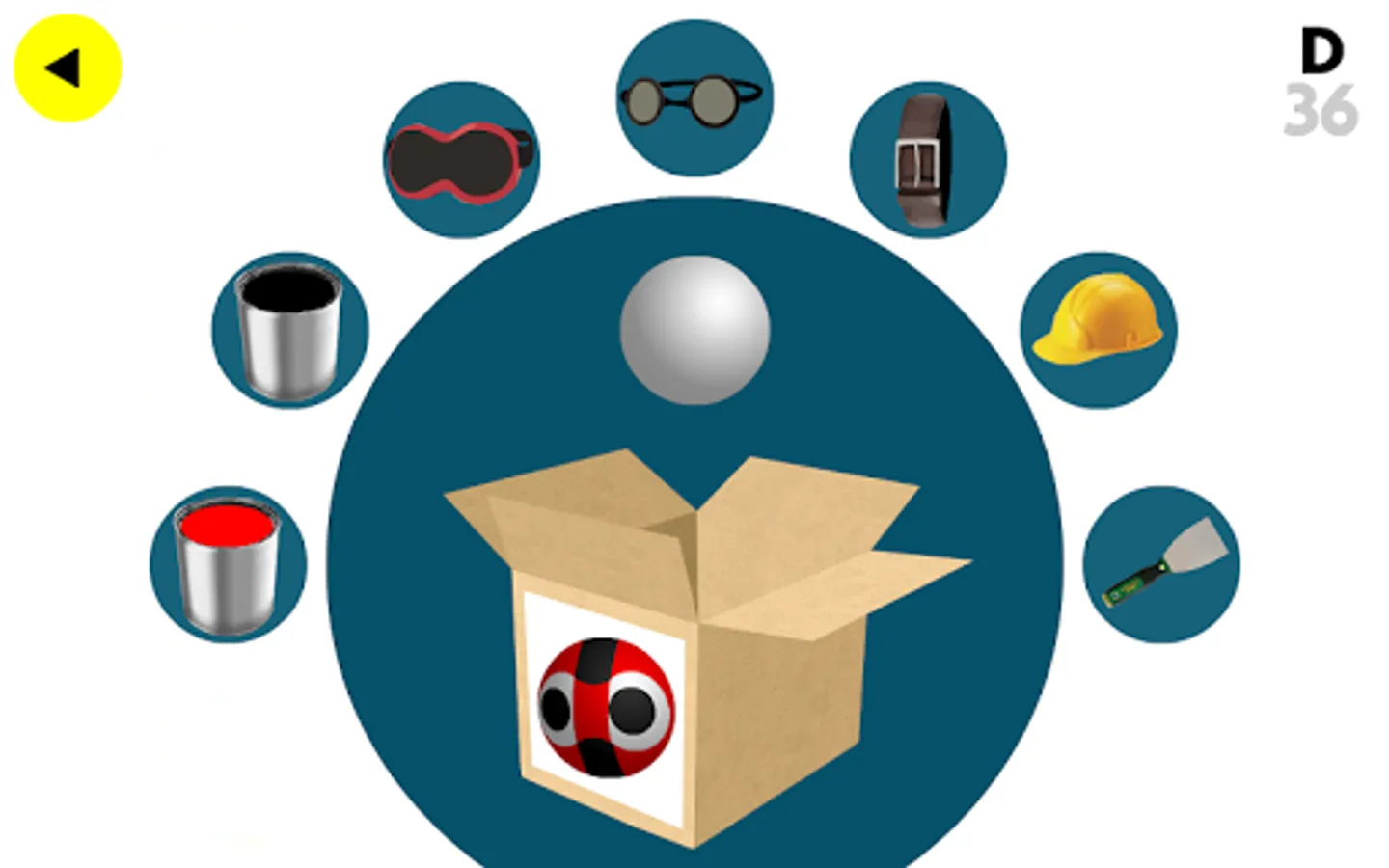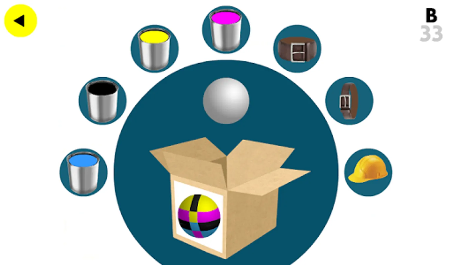 In each level, you'll see the target design of your ball on the shipping box. Starting from a plain white ball, get to work by clicking the tools you want to use and try to manufacture the correct ball.
