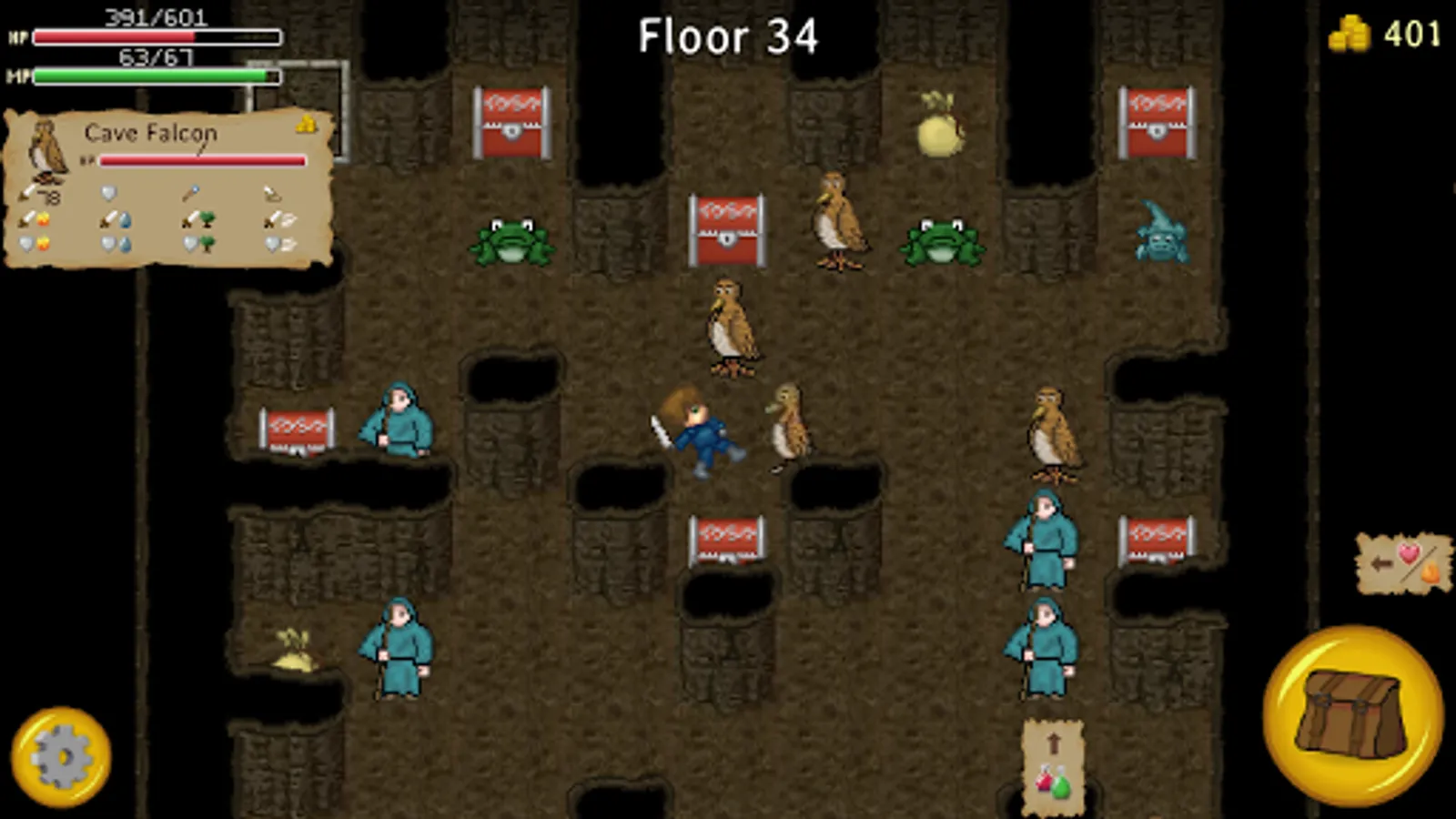 Enter the Enchanted Cave, collecting artifacts, stat gems and gold as you fight to reach floor 100! Use the Escape Wings to teleport out and recover, then head back in with powerful artifacts to delve deeper into the cave each time.